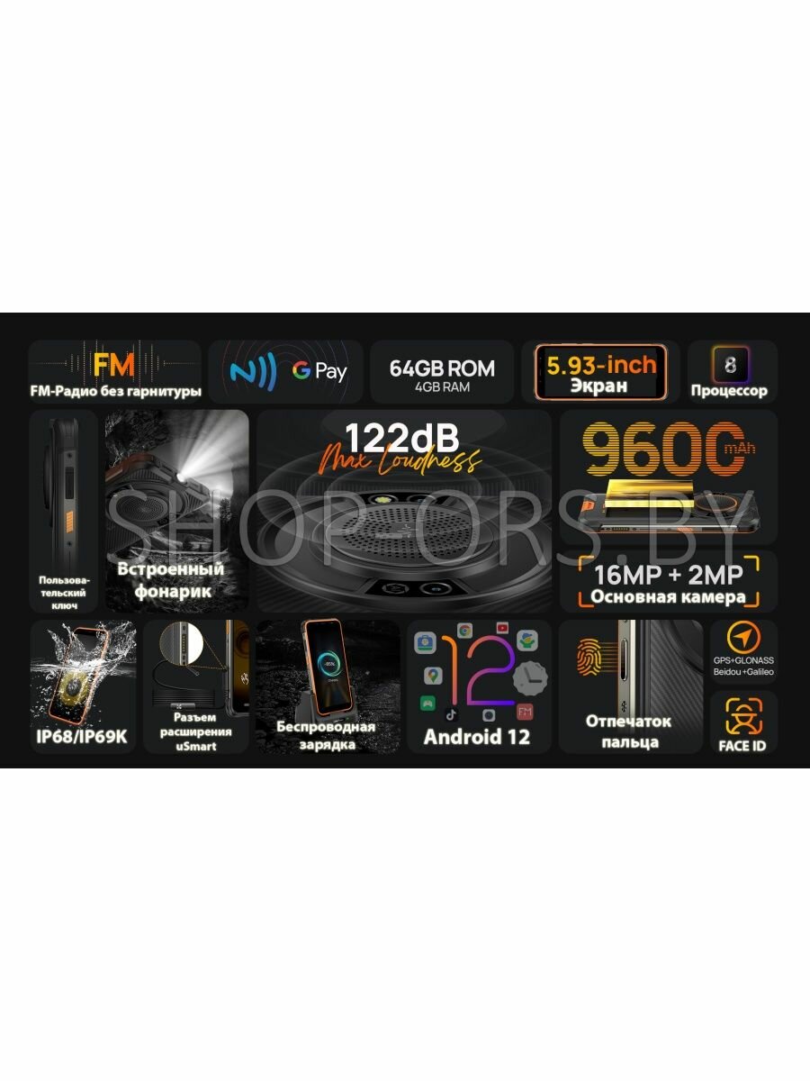 вполне достойная фотокамера , качество звука хорошее, только надо быть осторожнее с регулировкой громкости, чтобы не напугать тех, кто рядом))) ( 122 дБ - не шутки), очень кстати петля для переноски ( телефон тяжелый), высокий класс прочности IP69K/IP68 ( от случайных падений помогает/ стекло не бьется , работает потом исправно,) и влагонепроницаемости ( можно вести подводную съемку). экран 5.93" высокого разрешения( только не пытайтесь по этому параметру оценить размер телефона; он существенно больше: длина ~16.5см, ширина ~ 8см) память:4Гб/64Гб- для моих нуж достаточно( не играю в игры). Корпус приятный на ощупь, , есть NFC, есть настраиваемая кнопка. |