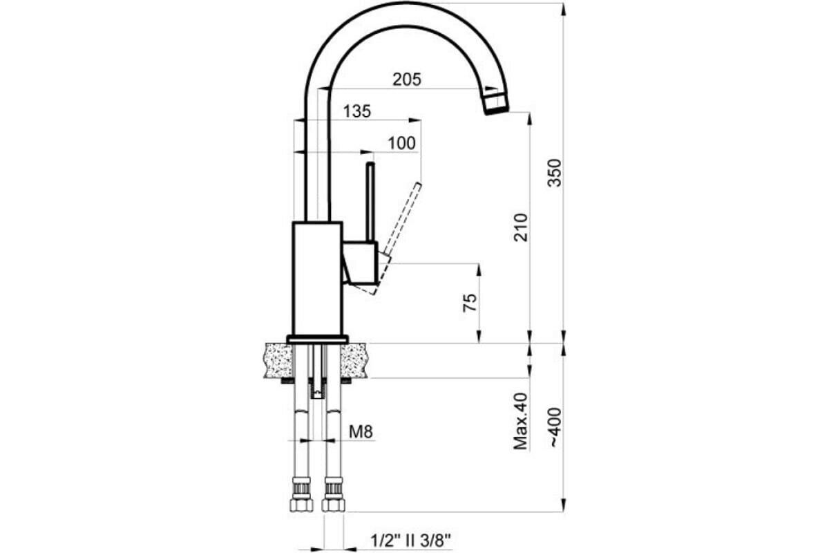 | Длина излива | 205 мм |