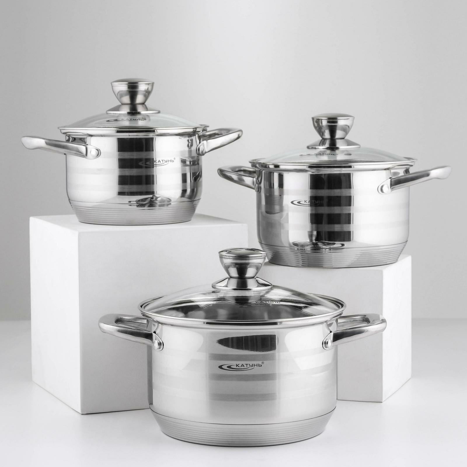 Катунь Набор кастрюль «Элис», 3 предмета: 1,8 л, 2,5 л, 3,5 л, крышки