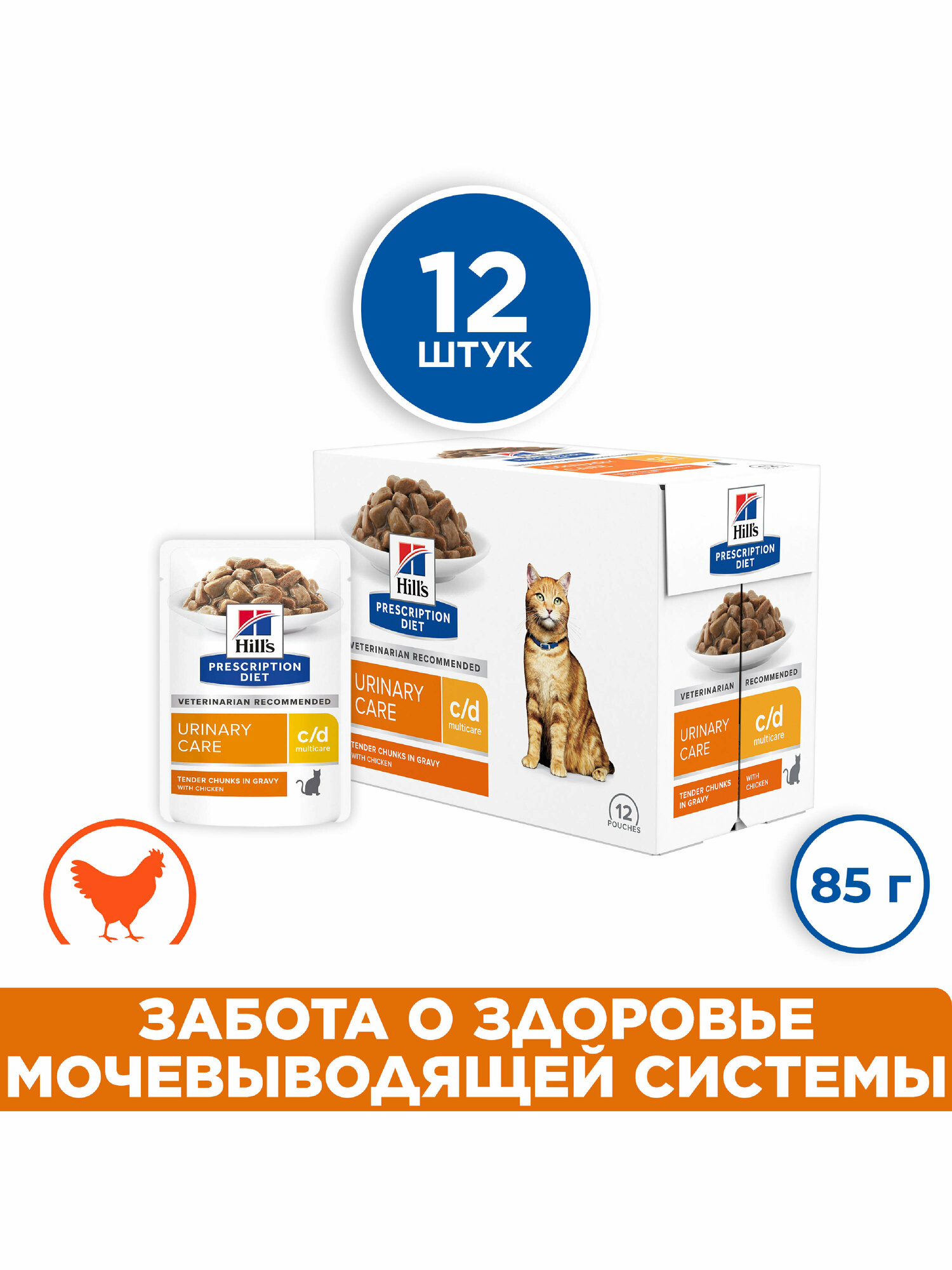 Влажный корм для кошек Hill's Prescription Diet c/d Multicare, для профилактики МКБ, с курицей 12 шт. х 85 г (кусочки в соусе)