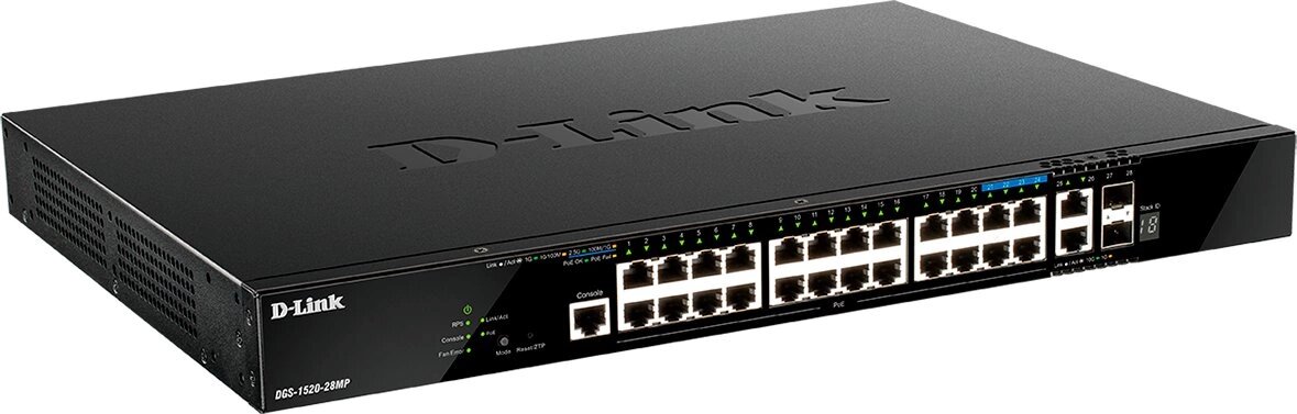 Коммутатор D-Link DGS-1520-28MP/A1A (L3) 24x1Гбит/с 2x10Гбит/с 4x2.5Гбит/с 2SFP+ 24PoE+ 370W управляемый интересное: