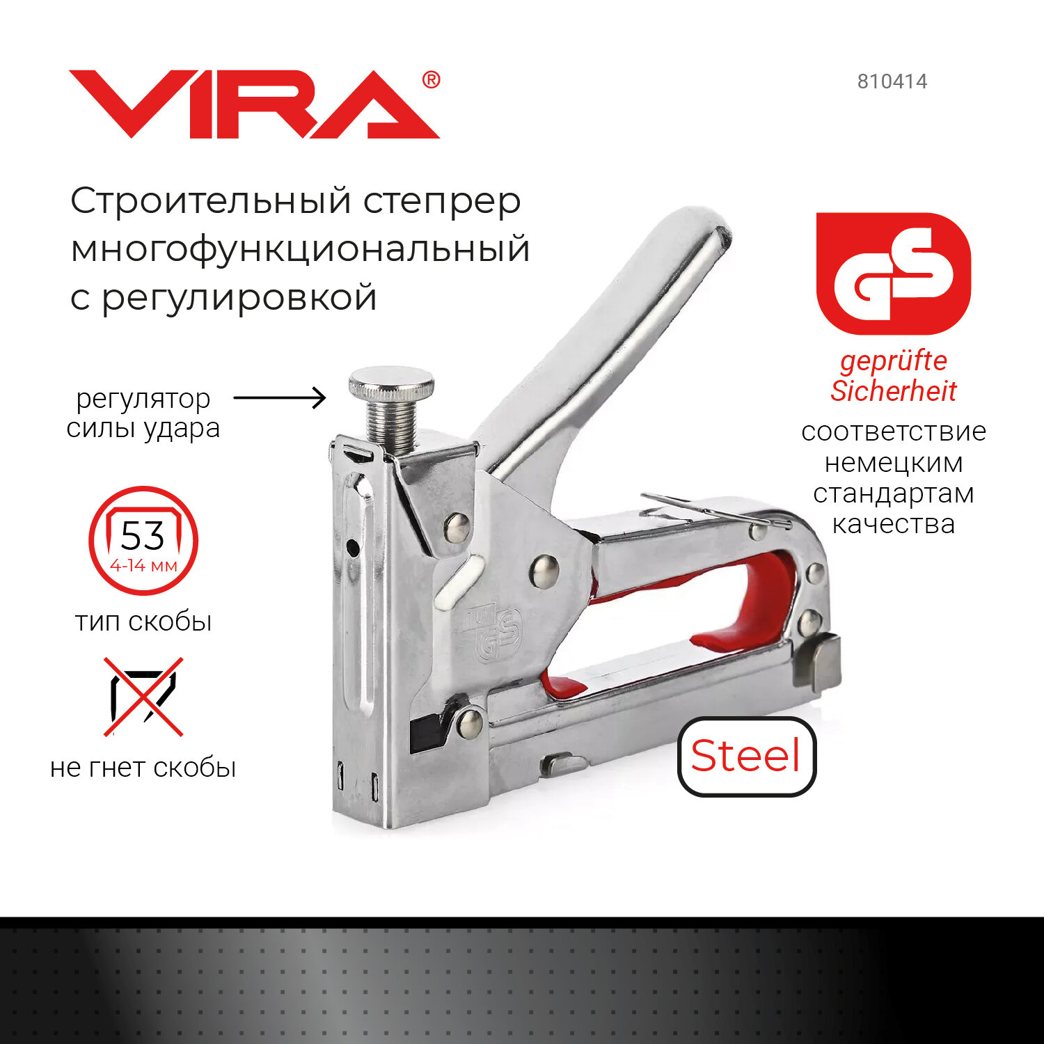 Степлер Vira многофункциональный с регулировкой, скобы 4-14 мм