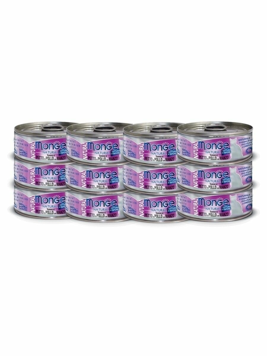 Monge Cat Natural Влажный консервированный корм для кошек "Тунец с курицей и говядиной", 80гр, 12шт
