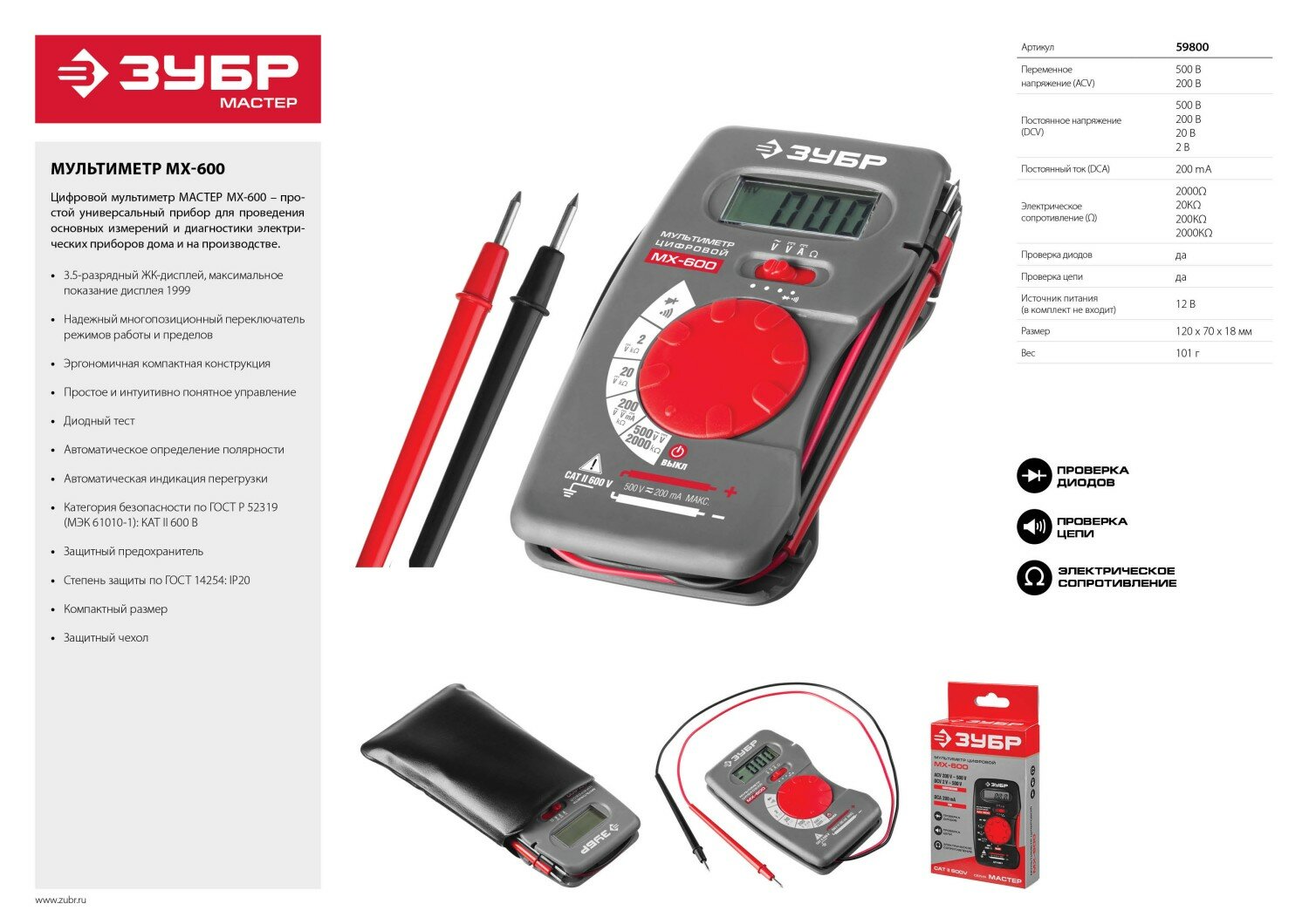 ЗУБР MX-600 Цифровой мультиметр (59800)