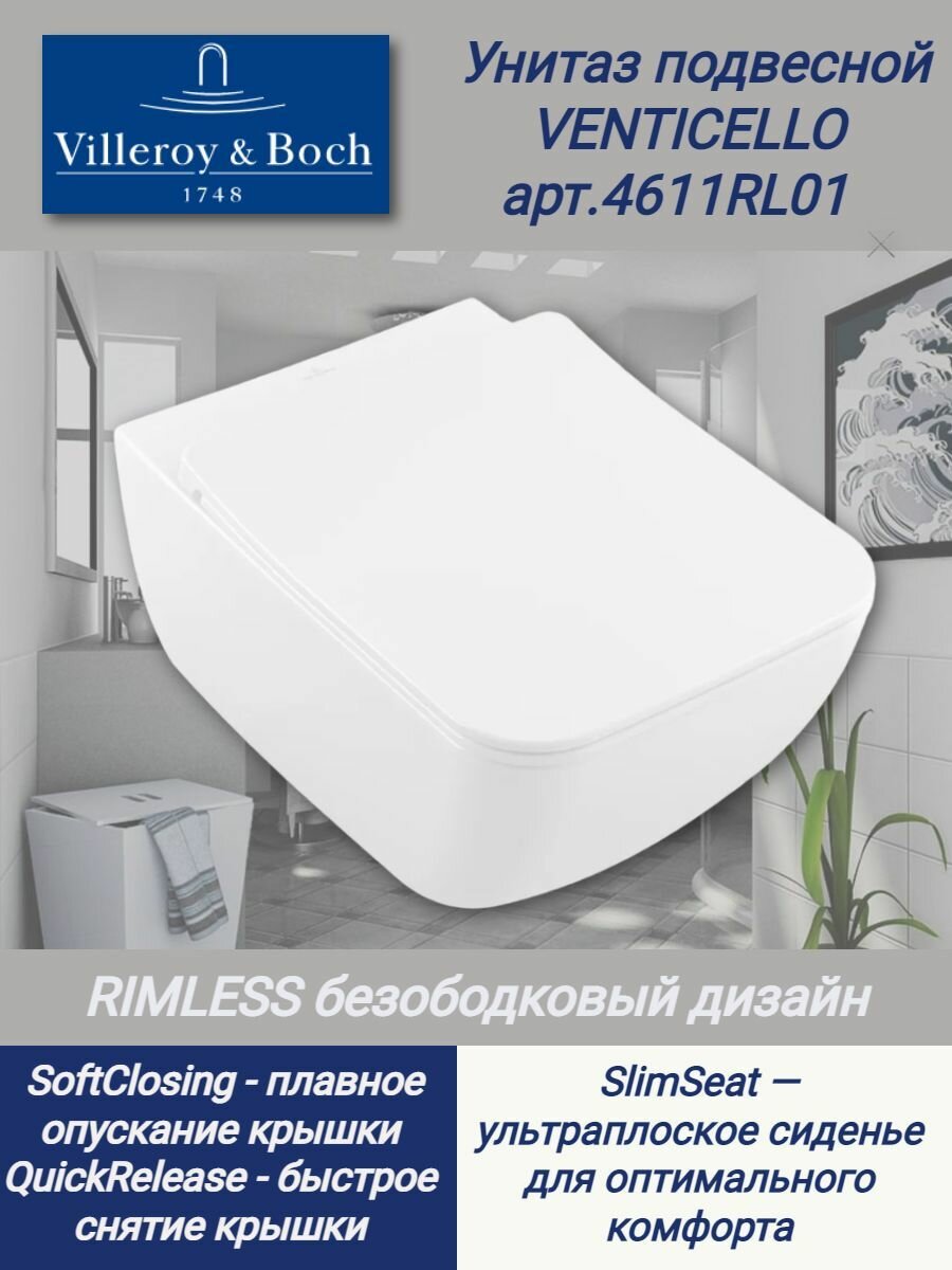 Унитаз подвесной Villeroy&Boch Venticello 4611RL01 микролифт, цвет-альпийский белый
