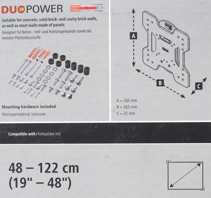 Кронштейн Hama H-118050 FIX (для телевизоров, от 19" до 48", до 25 кг, чёрный)