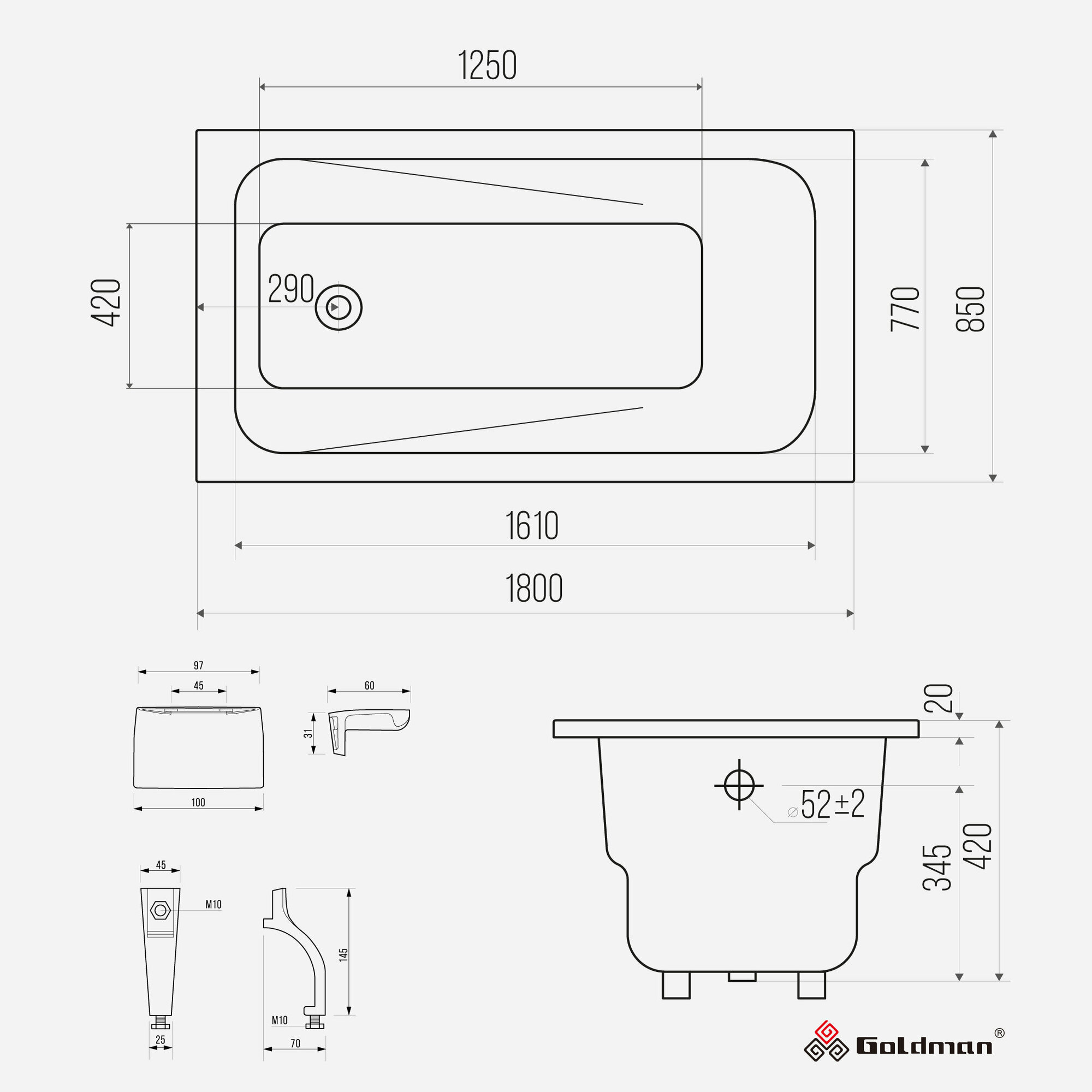 Чугунная ванна Goldman Art 180x85x42 интересное:
