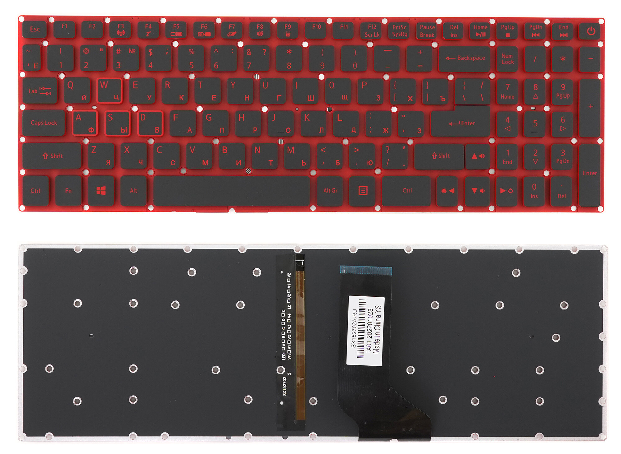 Клавиатура для Acer Nitro 5 AN515-51, p/n: SX152702A-RU, с красной подсветкой, без рамки, 1 шт