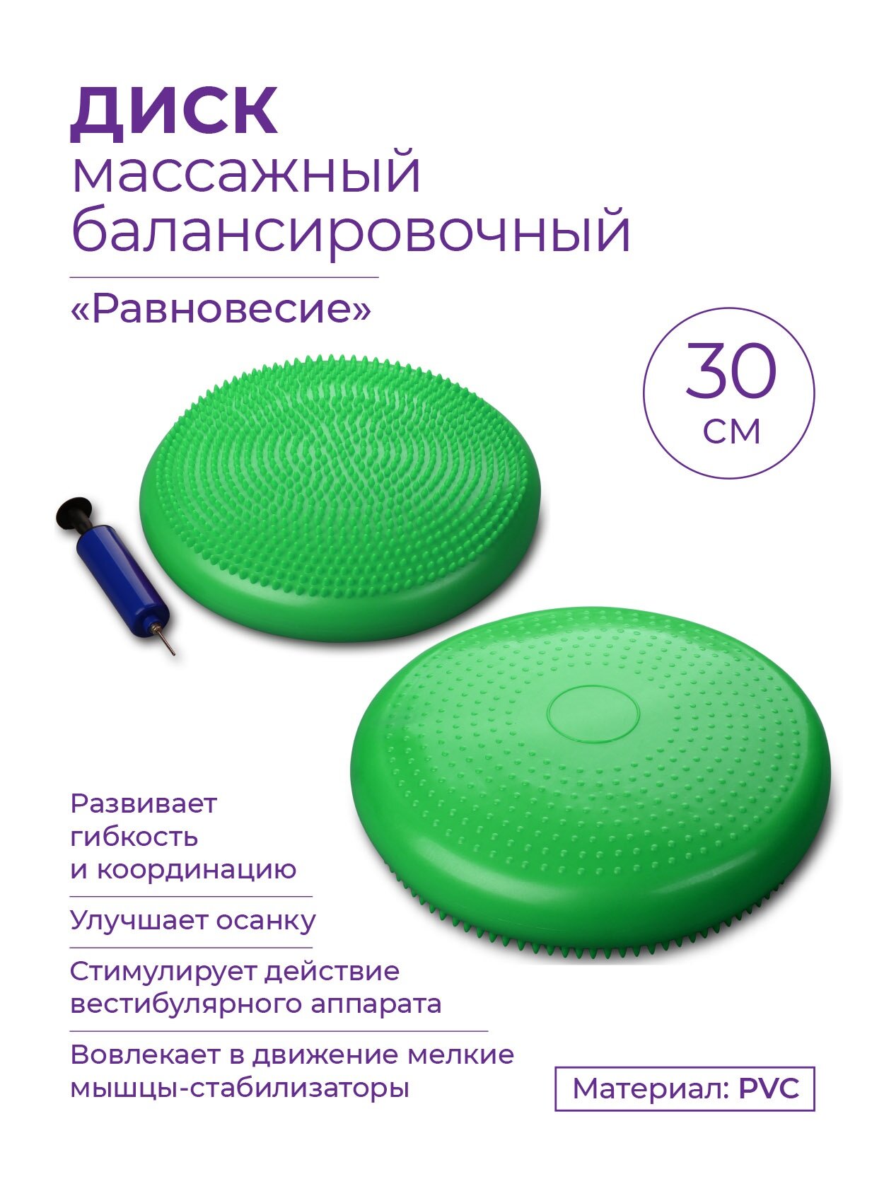 Диск массажный балансировочный 1BC 33-2 INDIGO "Равновесие" с насосом Зеленый 33 см интересное: