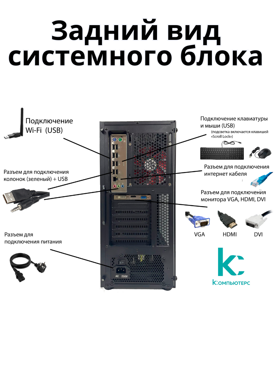 Игровой системный блок юкомс i7 12700f, RTX 3060 12GB GDDR6, ssd 240gb, 16Gb, БП 600W, win 10 pro, office 19 business, WI-FI