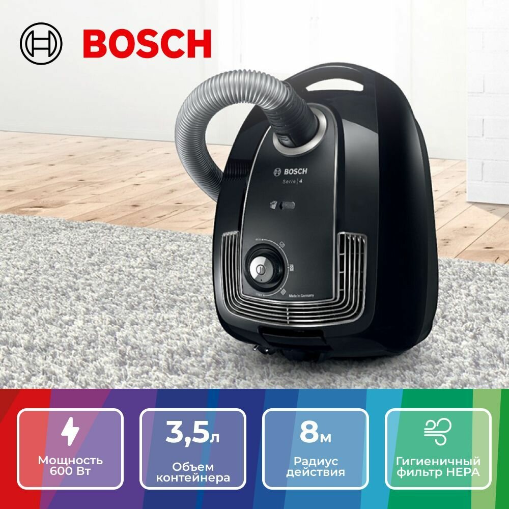 Пылесос Bosch BGLS2BA3D8, 600Вт, черный