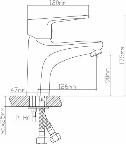 Смеситель для раковины, Boou B8282-1, латунь, литой корпус, однорычажный, с гибкой подводкой