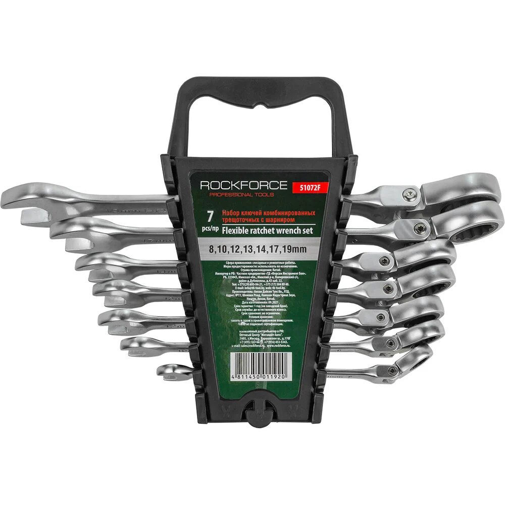 Набор ключей комбинированных трещоточных с шарниром 7пр.(8,10,12,13,14,17,19мм), в пластиковом держ, ROCK FORCE RF51072F (1 шт.)