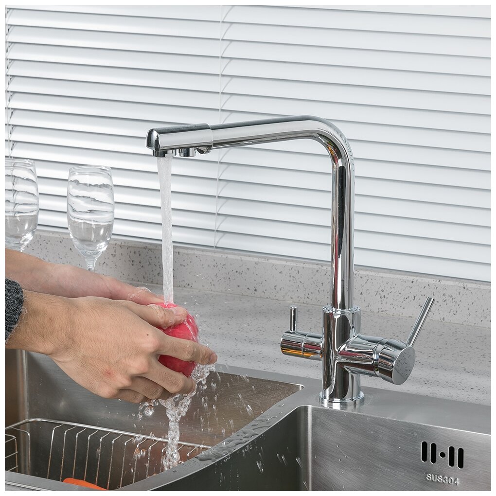 FRUD R43053, Смеситель для кухонной мойки под фильтр с краном для питьевой воды (поворотный излив, латунь, хром)