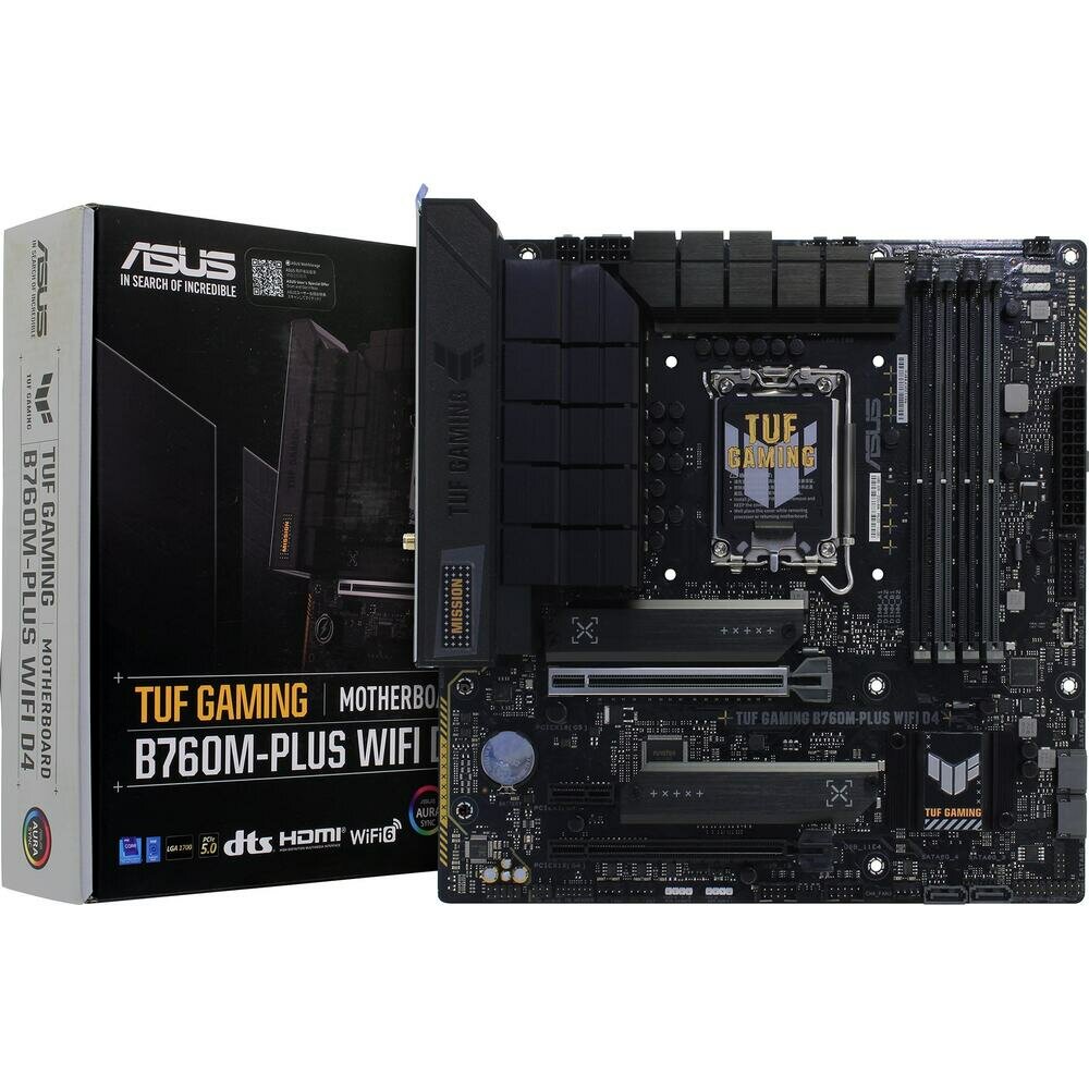 Материнская плата ASUS TUF GAMING B760M-PLUS WIFI D4 (mATX, B760, 4xDDR4, 3xPCIe, 2xM.2, 1хHDMI, 1хDisplayPort, 8хUSB)