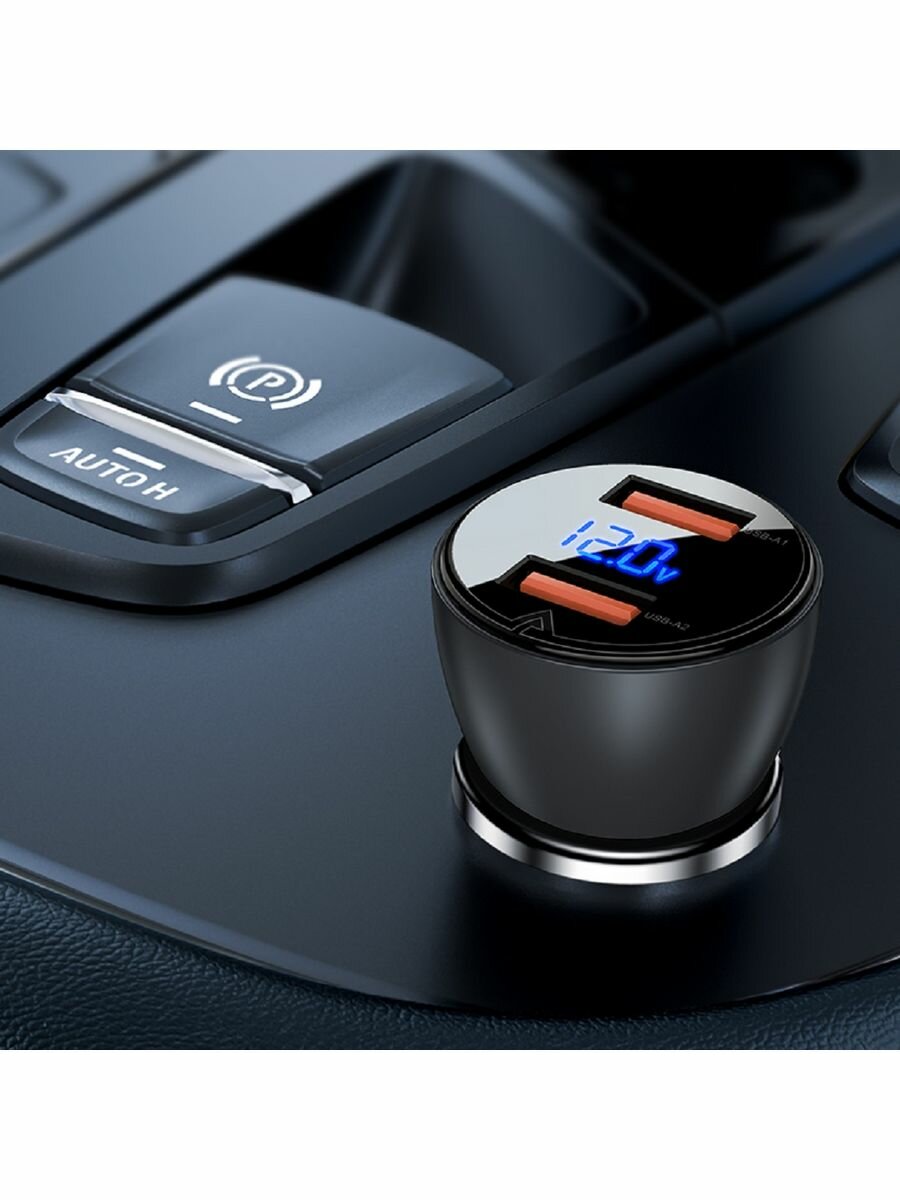 Автомобильное зарядное устройство ACEFAST B7 metal car charger 45W USB-A + USB-A with digital display с цифровым дисплеем. Цвет: черный/полупрозрачный черный