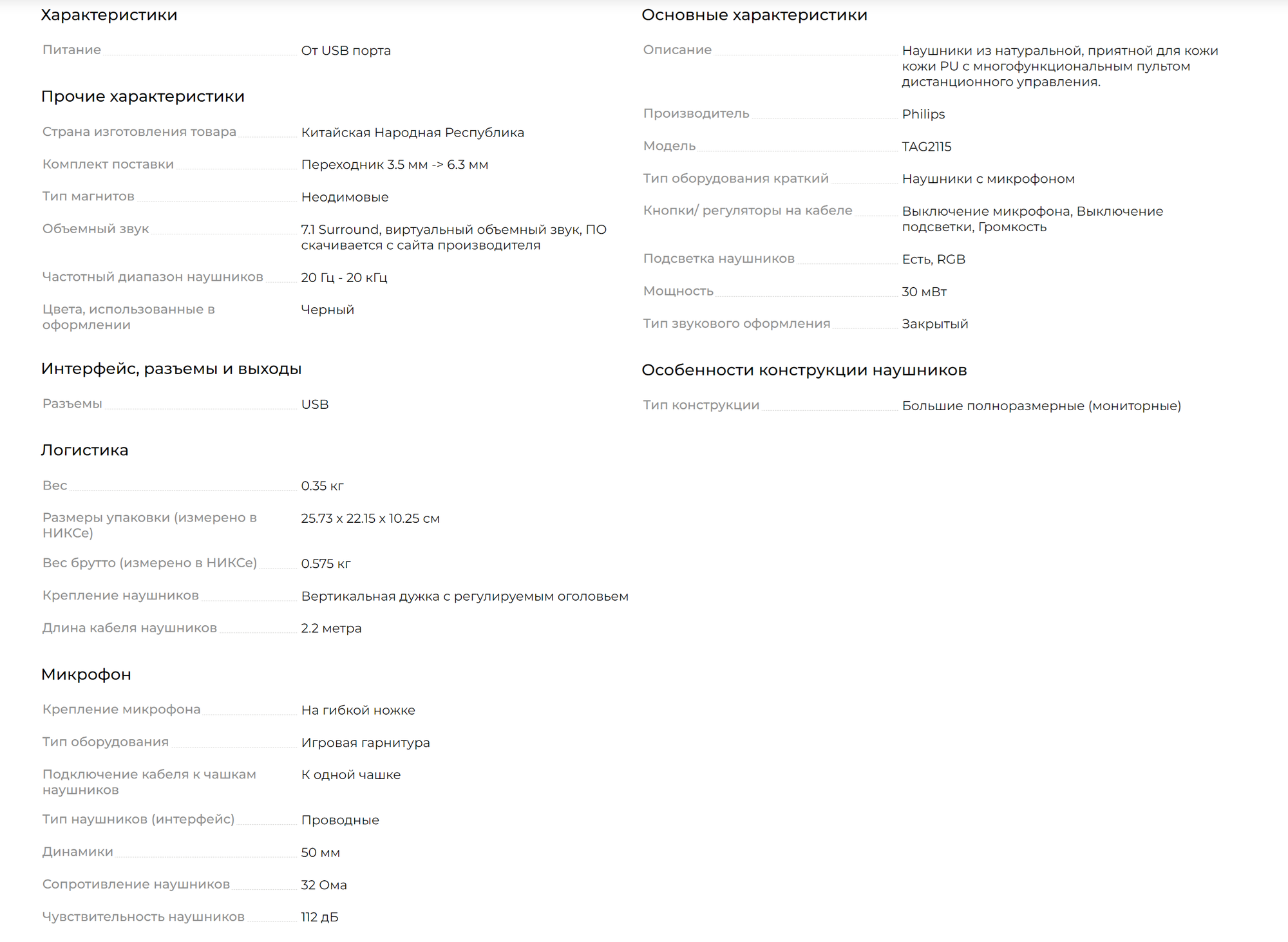 Купить Игровые наушники проводные PHILIPS TAG2115BK/93 с микрофоном, черный