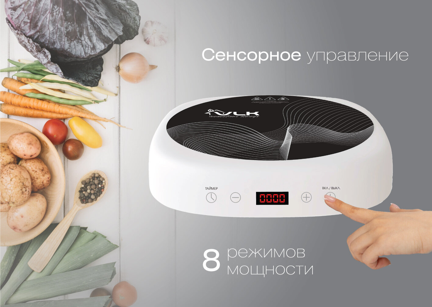Индукционная плита настольная электрическая VLK Palermo-7728 / 2000 Вт / до 15 кг / до 240 градусов / 8 уровней регулировки мощности