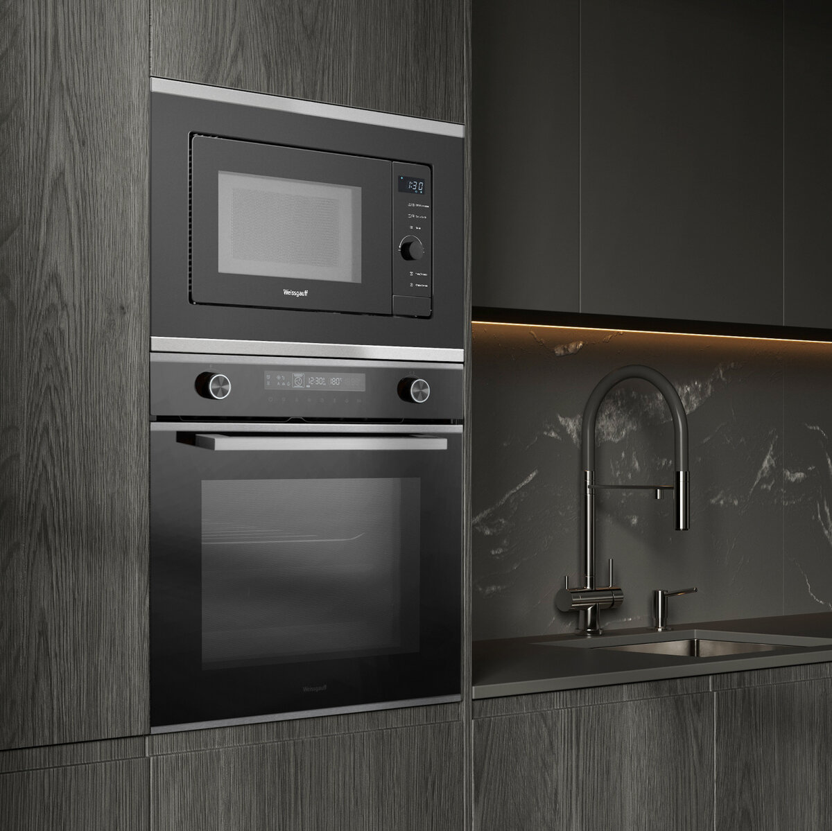 Микроволновая печь встраиваемая Weissgauff HMT-720 BX Grill, черный/нержавеющая сталь