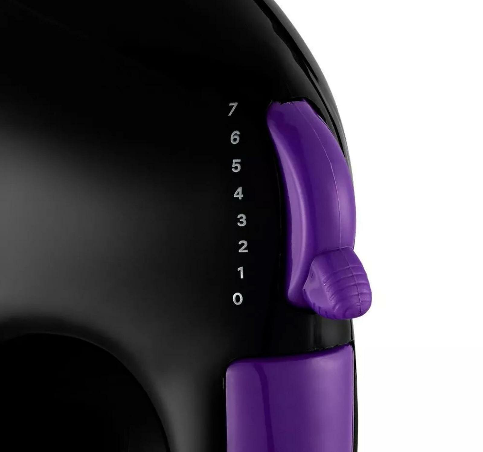 Миксер ручной Kitfort КТ-3404, 100 Вт, 7 скоростей, макс. скорость 1250 об./мин, цвет черный/фиолетовый