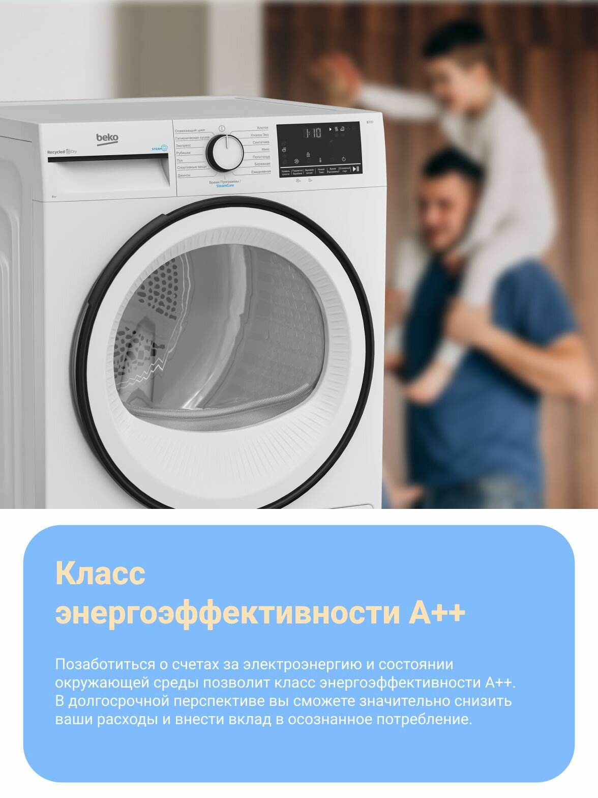 | Плюсы: | большой барабан, 15 программ сушки, бережный режим, удобный дисплей |