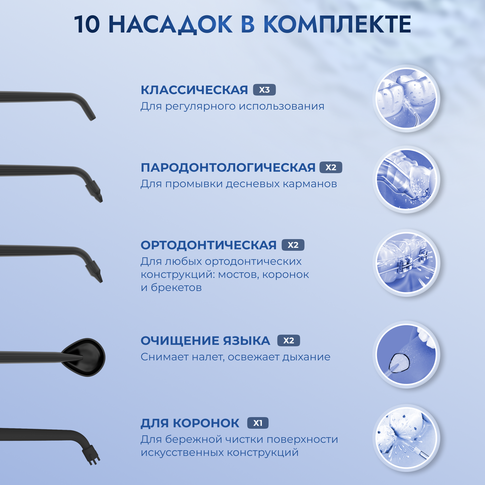 | Минусы: | Нет подставок для самого ирригатора и насадок |