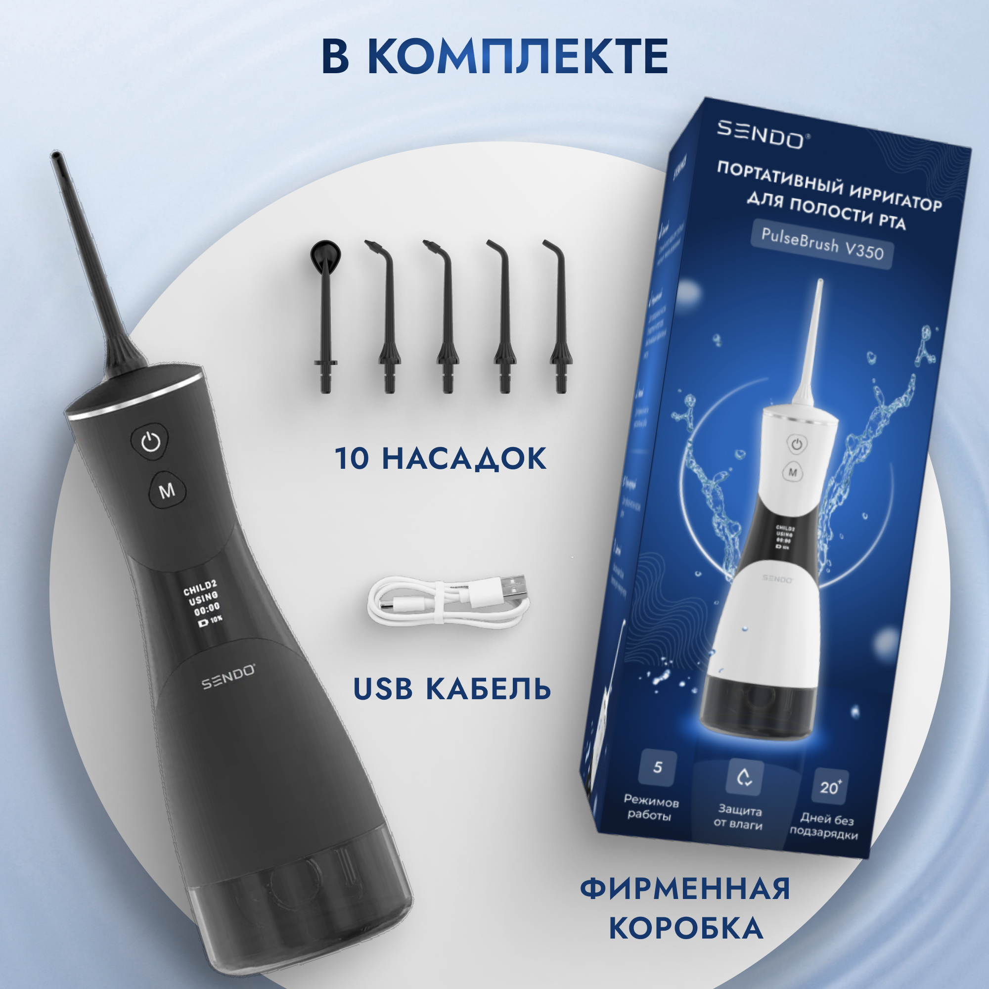 Купить Ирригатор для полости рта SENDO PulseBrush V350 - черный + набор насадок