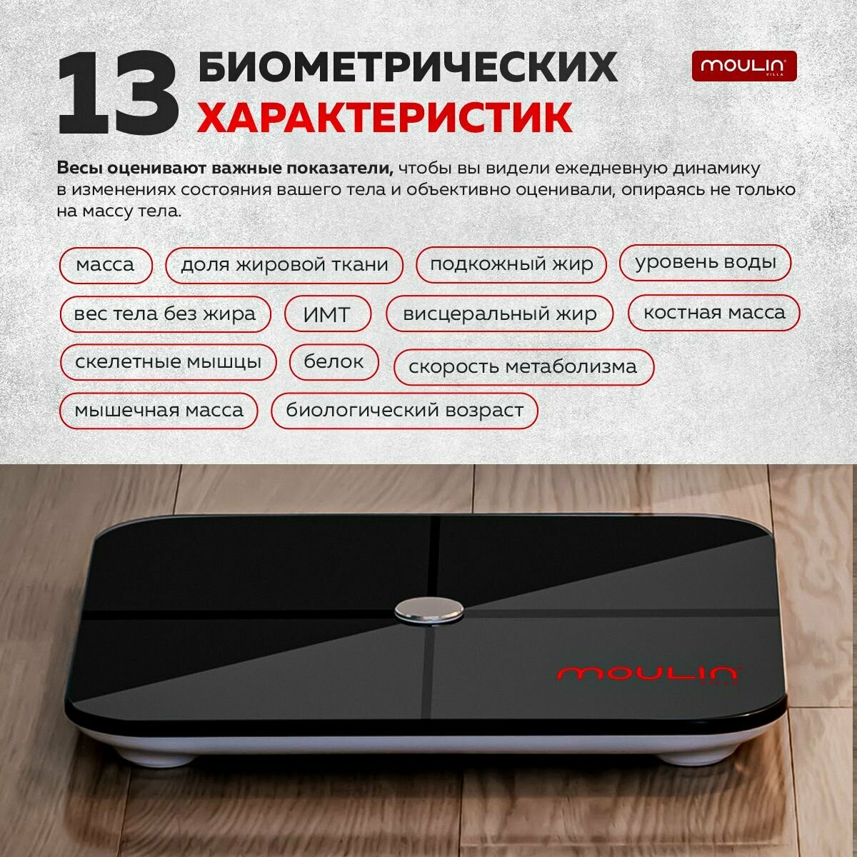 Весы напольные с приложением с функцией измерения биометрии тела Moulin Villa SC-002