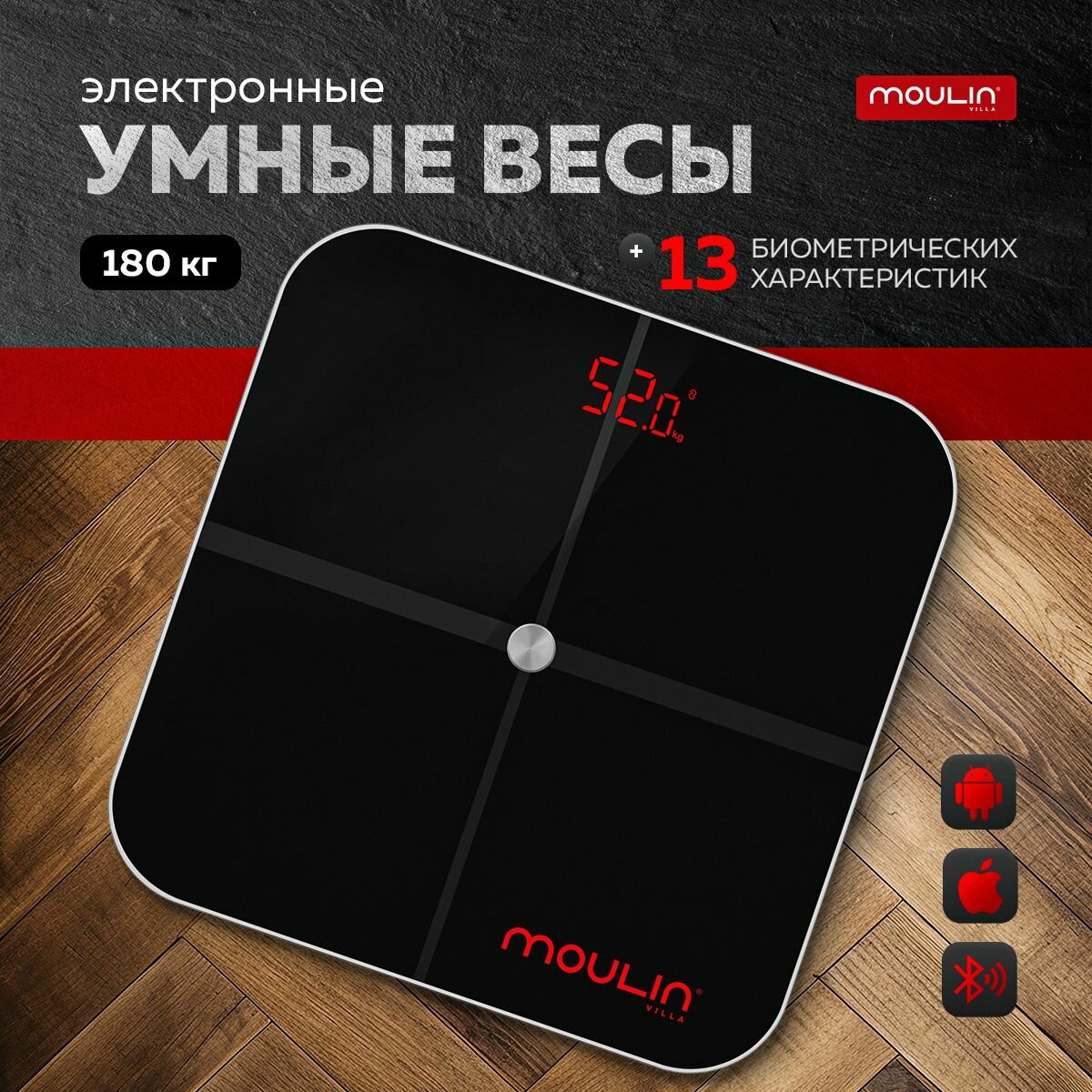 Умные весы Moulin Villa MV SC-002 / весы напольные электронные / диагностические весы черные