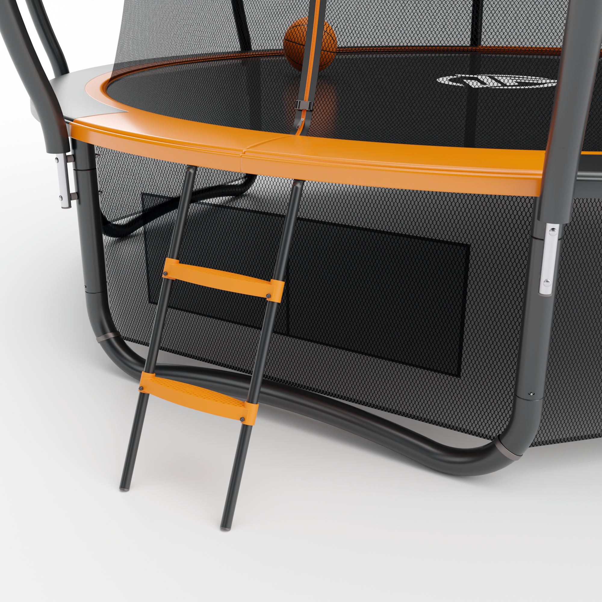 | Особенности | W-образные опоры / баскетбольное кольцо / защита пружин / нижняя защитная сетка / с защитной сеткой / с лестницей / складная конструкция |