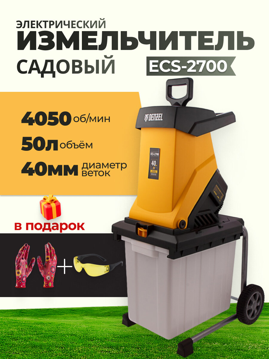 Измельчитель садовый электрический ECS-2700, 2700 Вт, 40 мм Denzel