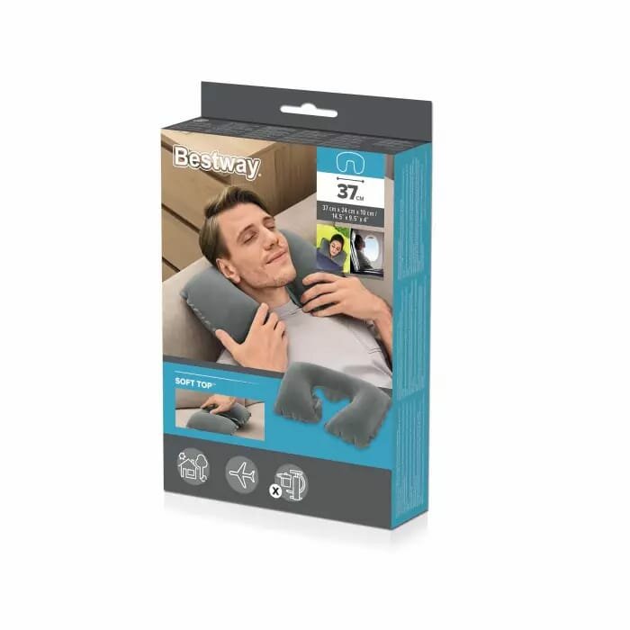 Подушка надувная для шеи флокированная Bestway (Бествей) 67006 (37х24х10) серый