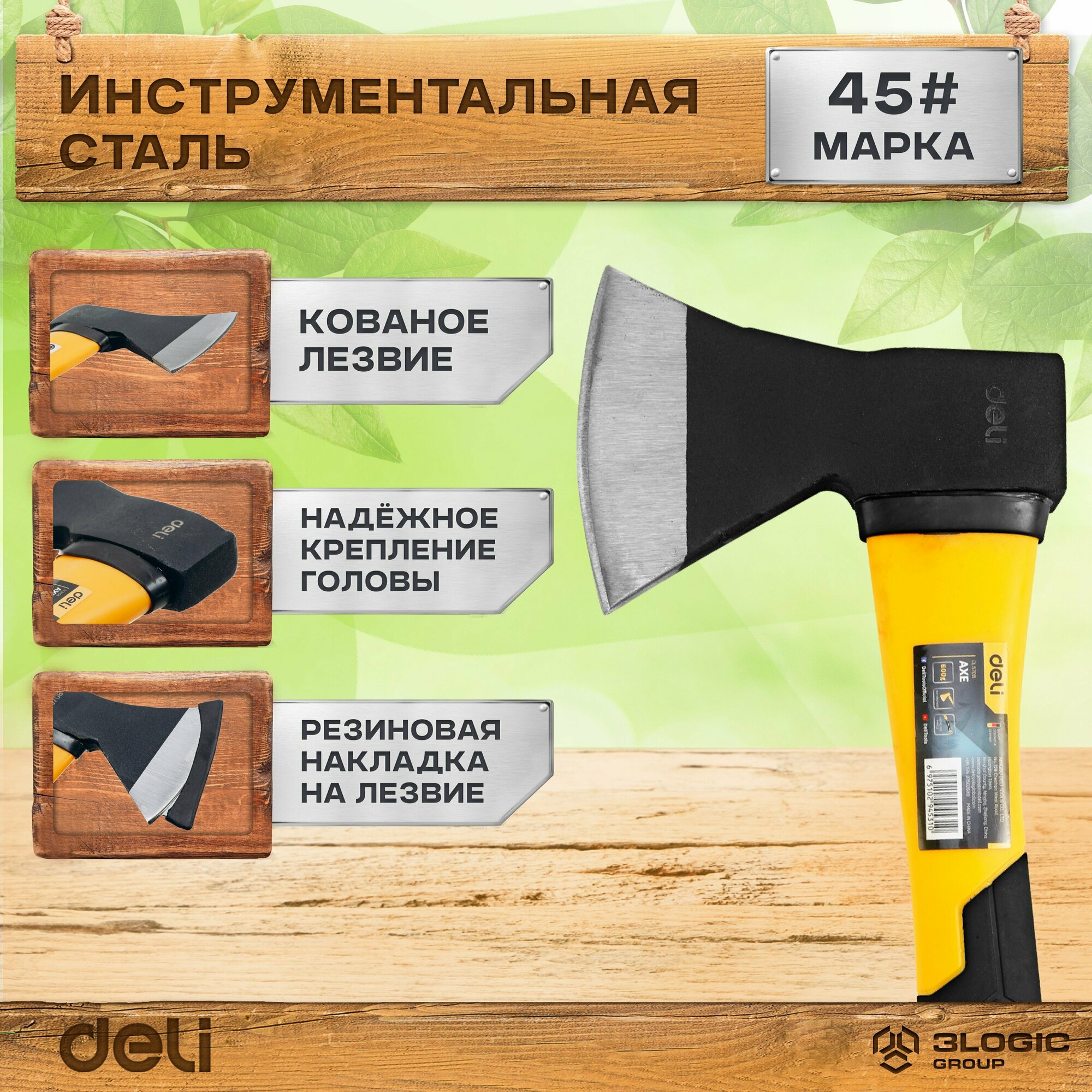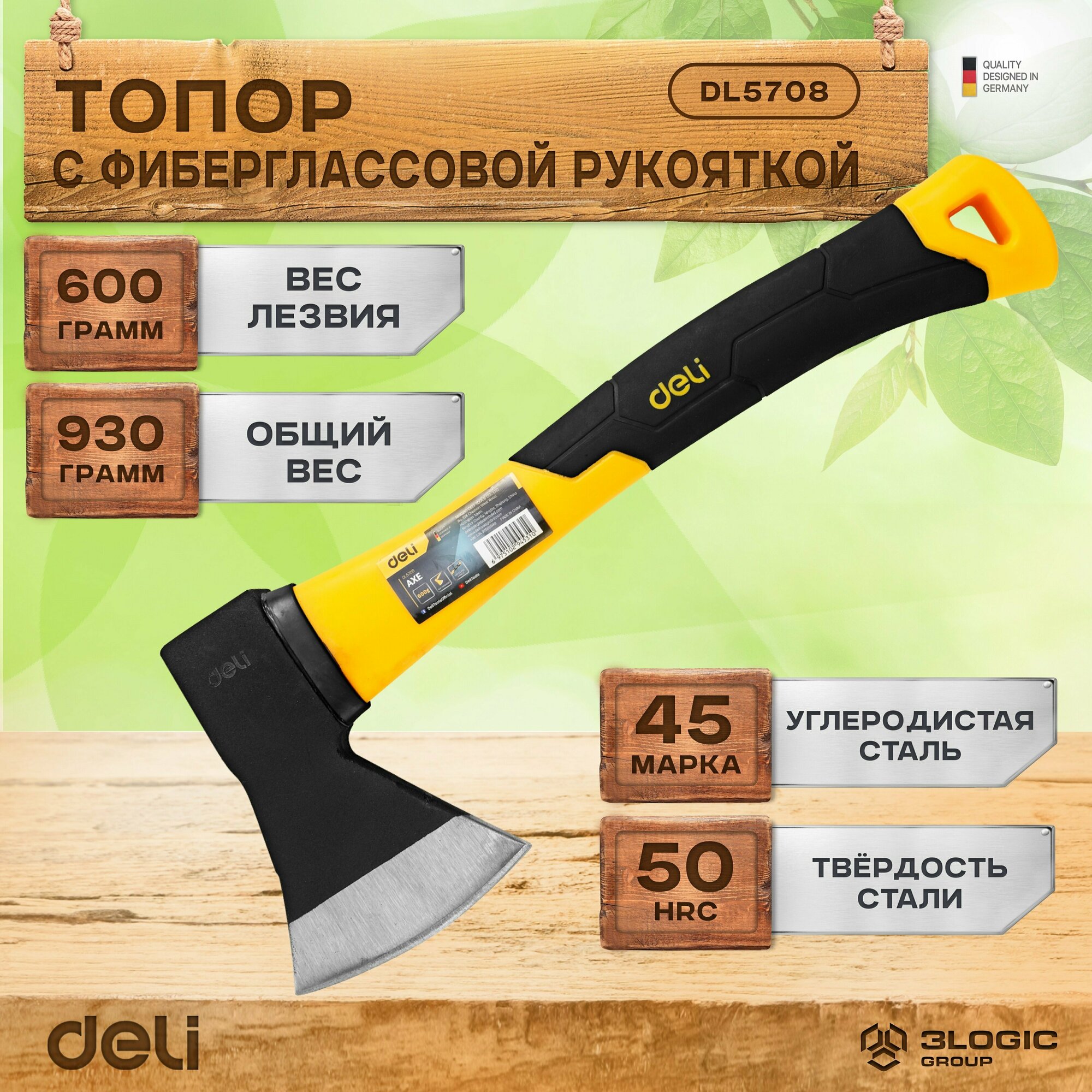 Топор Deli DL5708 600 грамм, фиберглассовая рукоять DL5708 .