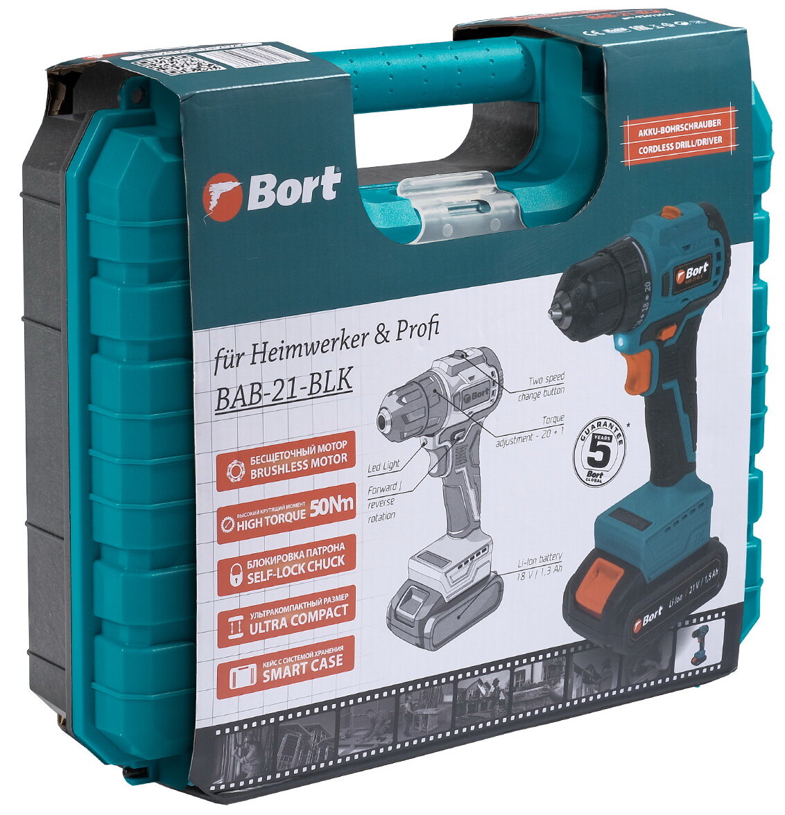 Дрель-шуруповерт аккумуляторная Bort Bab-21-blk, бесщеточная .