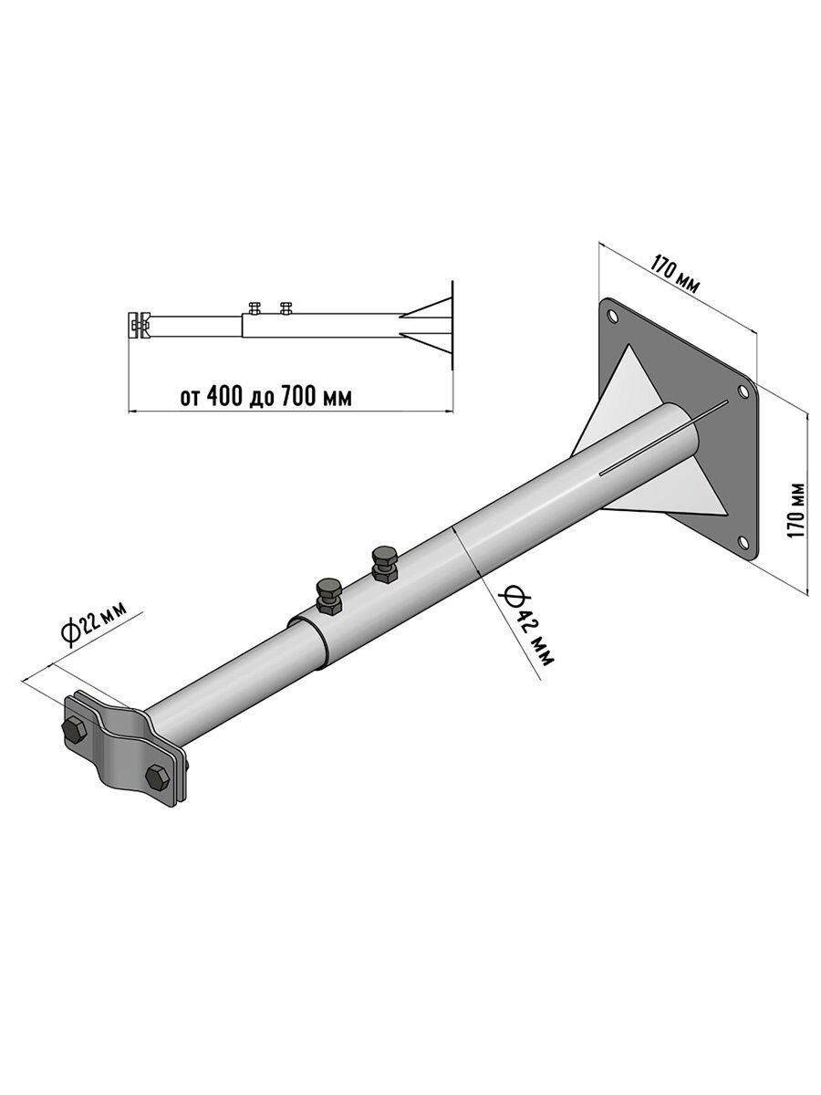 Кронштейн телескопический для крепления антенны мачты, вылет от стены 40-70 см