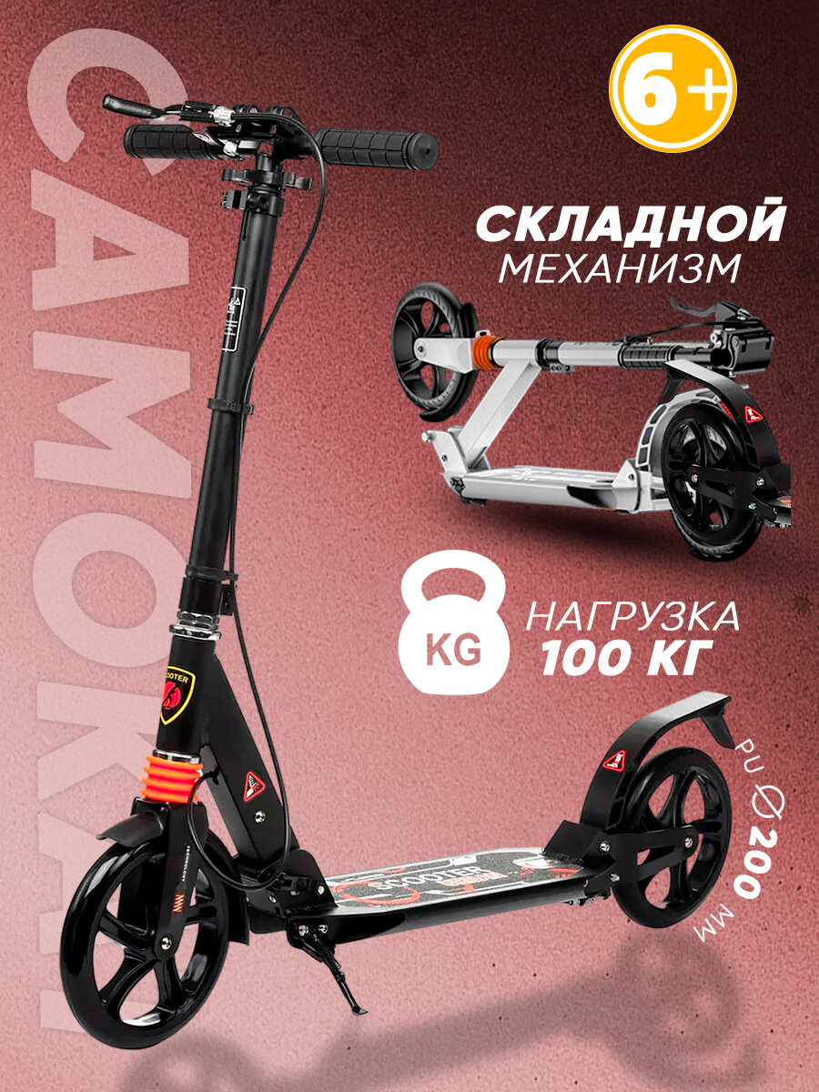 Городской самокат для взрослых и подростков Urban Scooter 2024, черный, размер колес:200мм, ручной тормоз