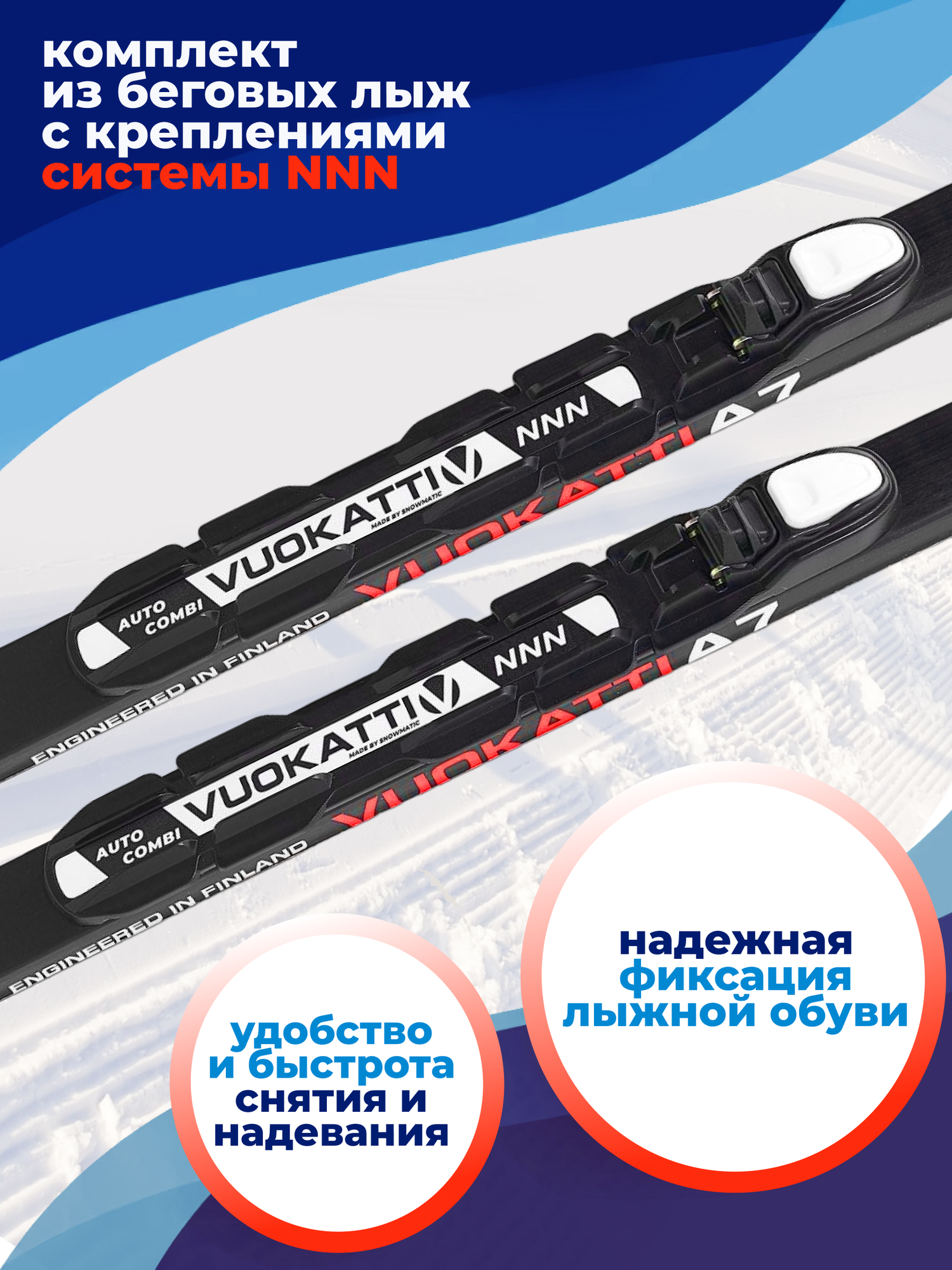 Купить Беговые лыжи взрослые VUOKATTI 185 см с креплением NNN Wax Black/Red