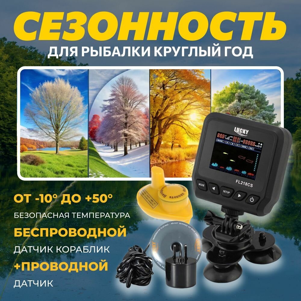 Эхолот для рыбалки найдет за 3 секунды где ловить рыбу Lucky FL218CS-WT с двумя датчиками проводного и беспроводного типа действия, подойдет для зимней и летней рыбной ловли с лодки и в лунке