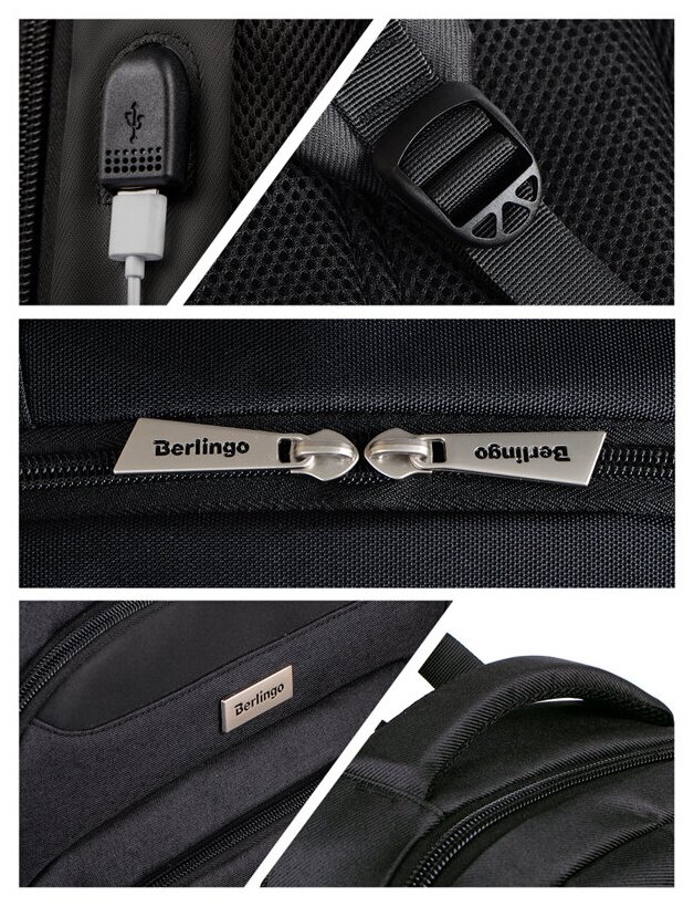 СохранитьРюкзак Berlingo City "Strict black" 42*29*17см, 2 отд, 3 карм, отд. для ноут, USB разъем, эргоном. спинка (арт. 313437) интересное: