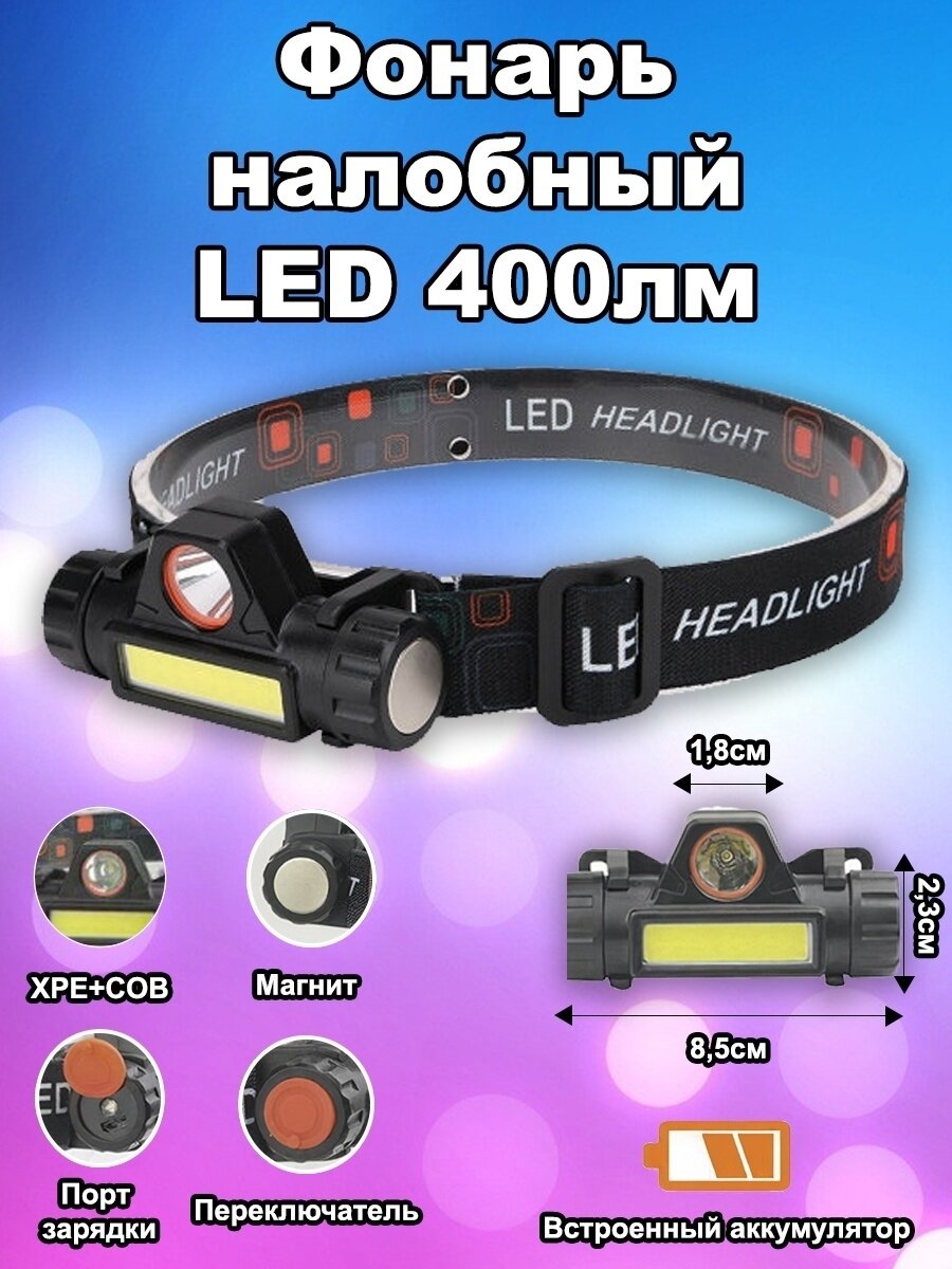 Фонарь налобный аккумуляторный светодиодный HT665, COD диоды 16 шт (магнит, micro USB)