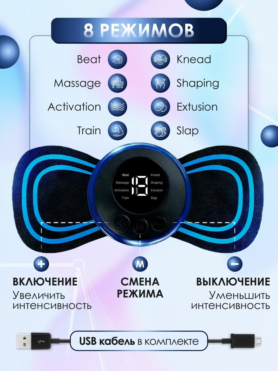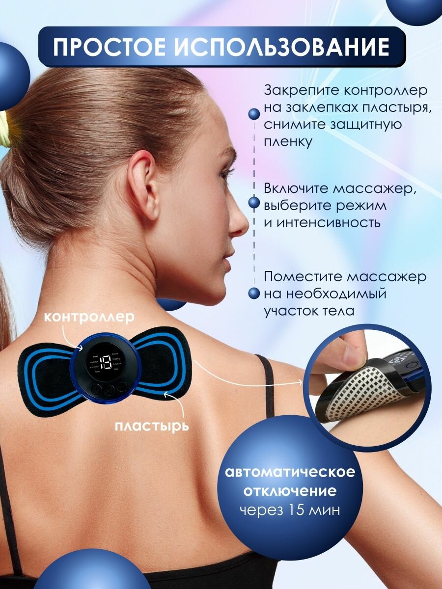 Массажер для спины бабочка/ миостимулятор электромагнитный волновой микротоковый для шеи, ног, рук, головы/ электромассажер