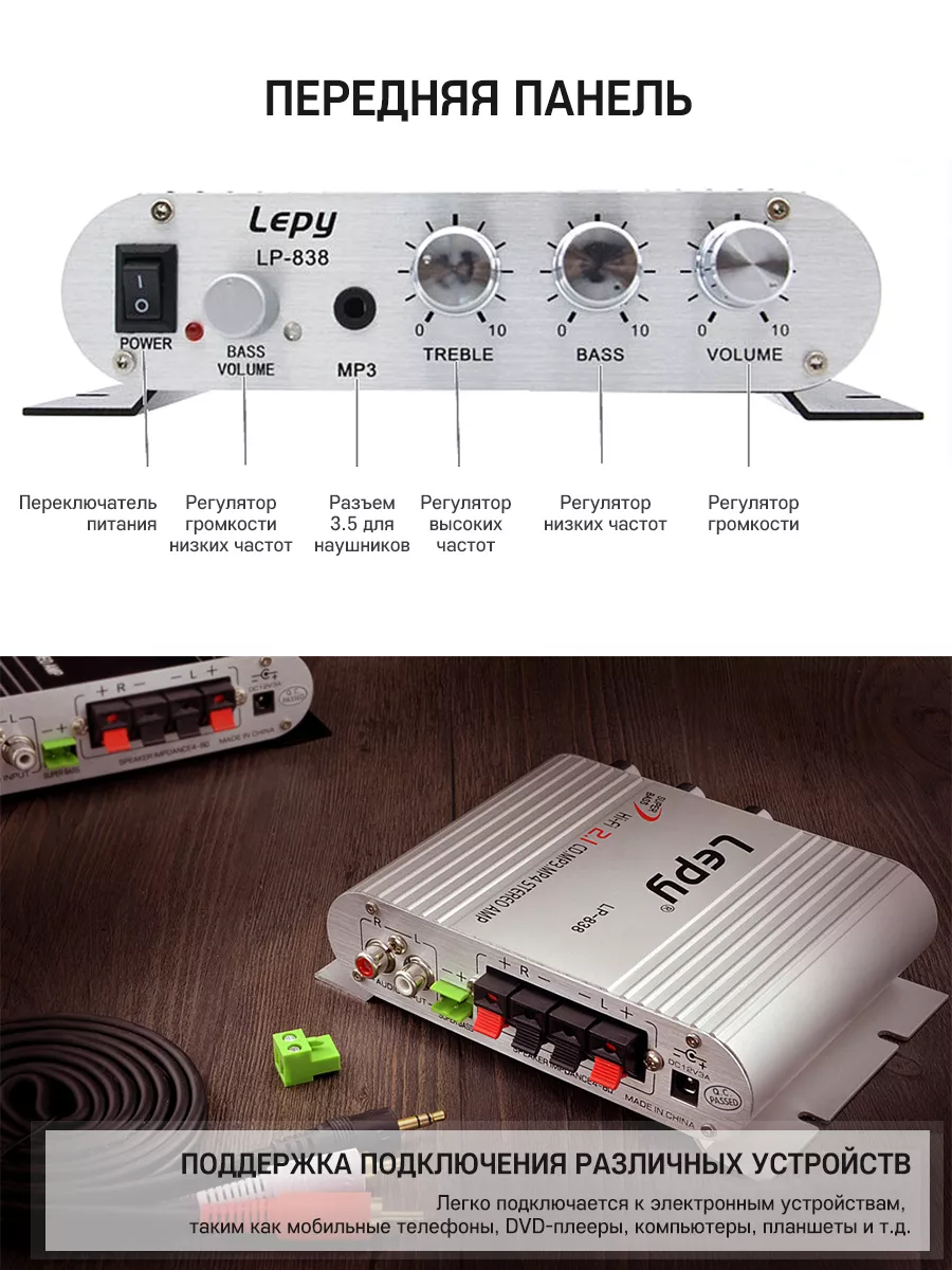 Аудио усилитель Lepy LP-838, Hi-Fi усилитель звука интересное: