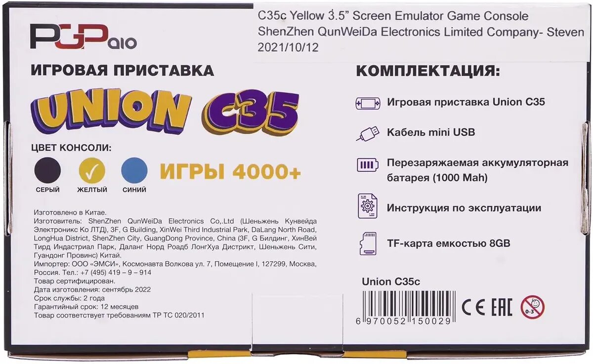 Игровая приставка Union C35c, USB, 64 бит, 4000 игр, жёлтая интересное: