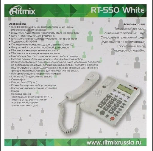 Ниже Вы можете прочитать отзывы на Проводной телефон Ritmix RT-550 белый/серый, ознакомится с подробными характеристиками, посмотреть интересные обзоры и фотографии на Проводной телефон Ritmix RT-550 белый/серый.