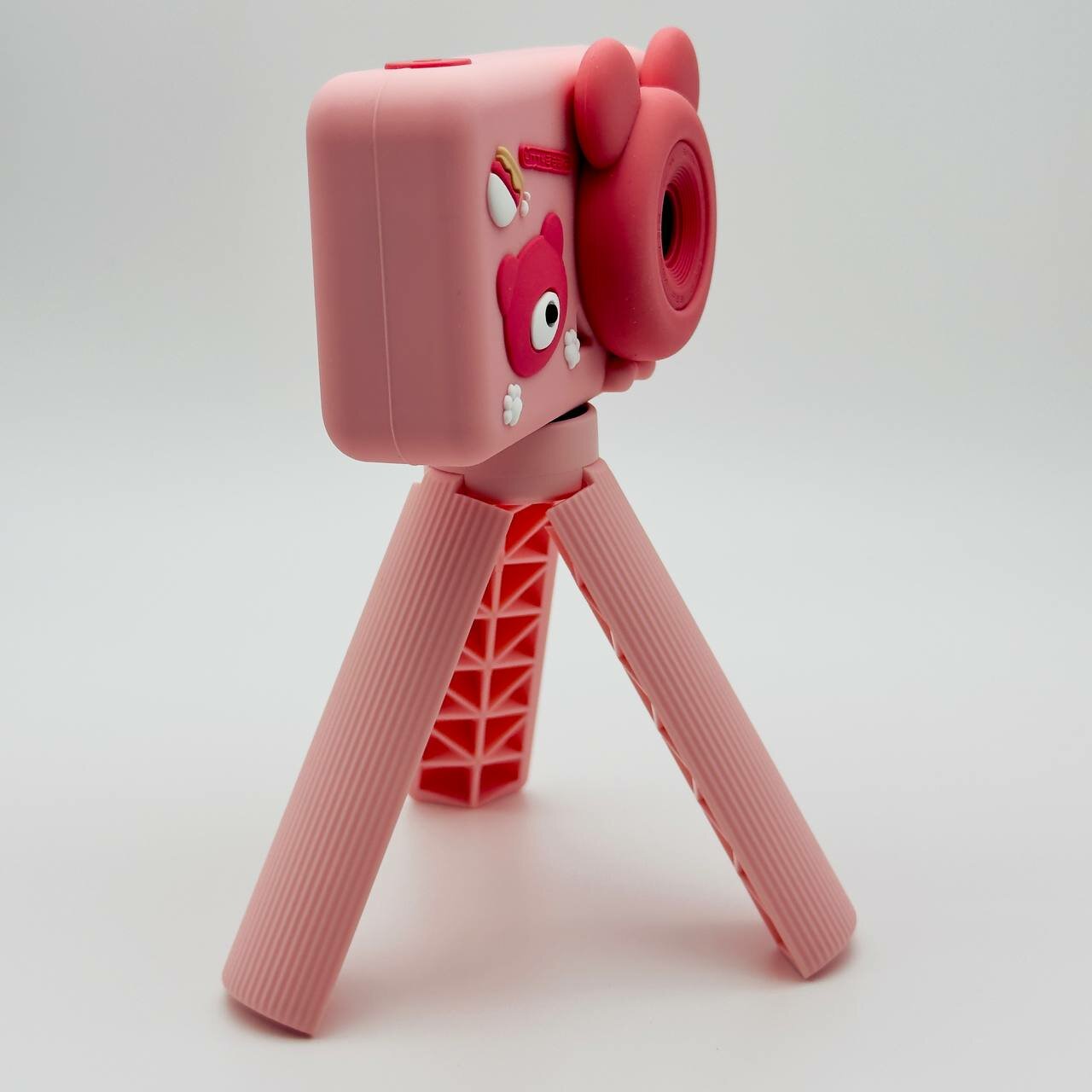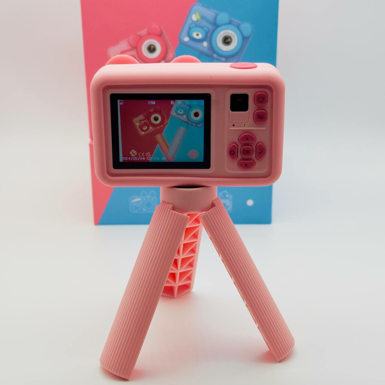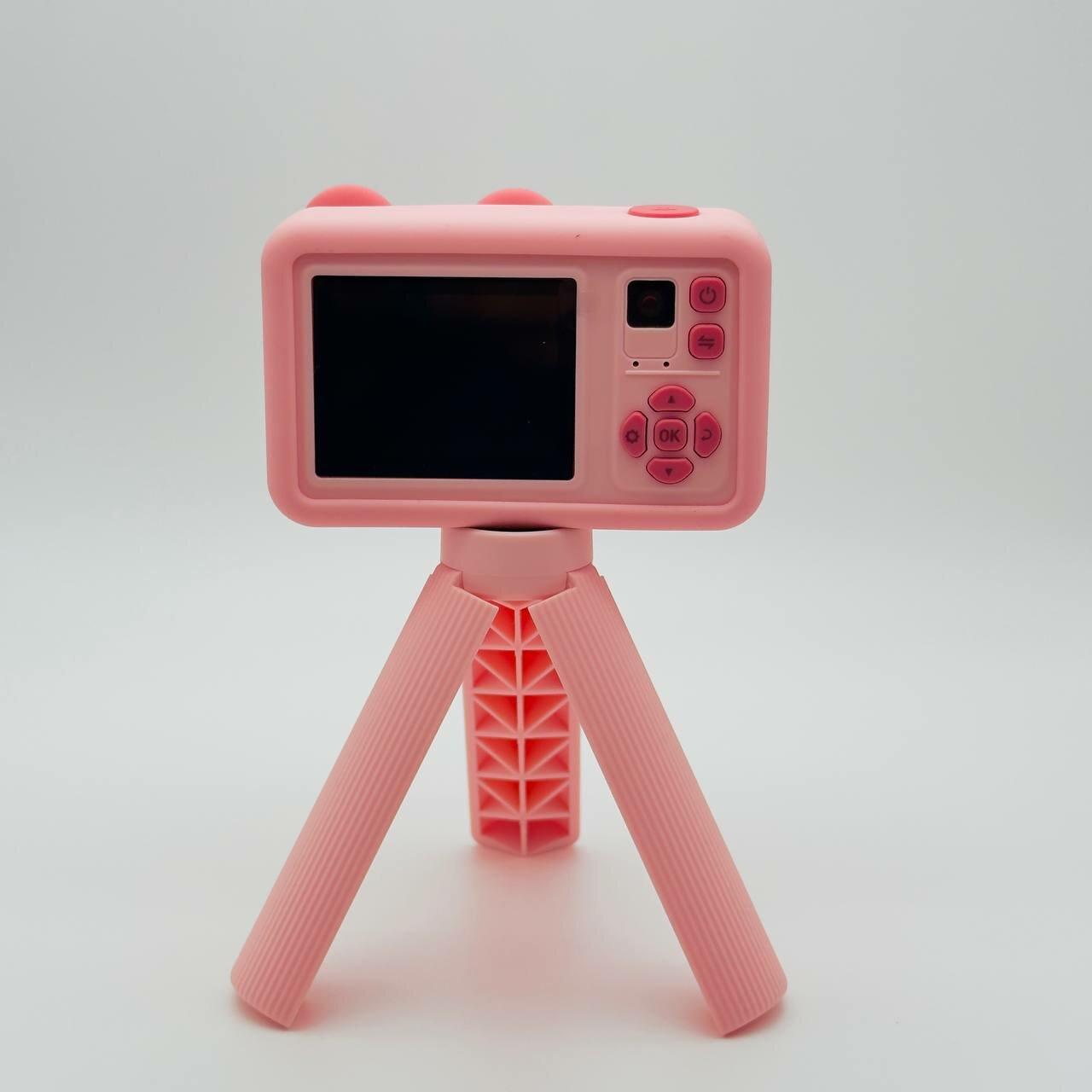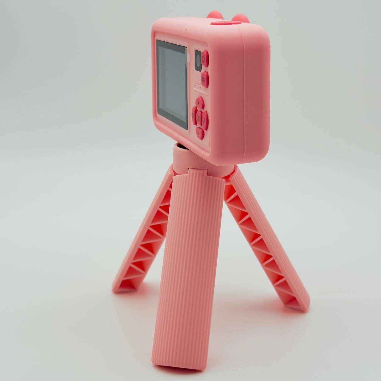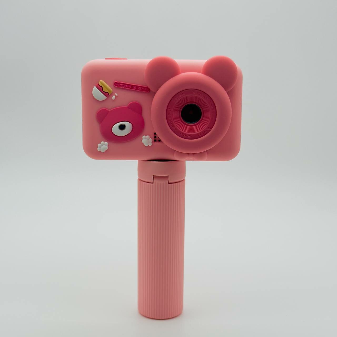 Купить Фотоаппарат детский цифровой Мишка Розовый со штативом ударопрочный камера 1080p Full-HD со встроенной памятью, фотоаппарат для детей с играми и селфи