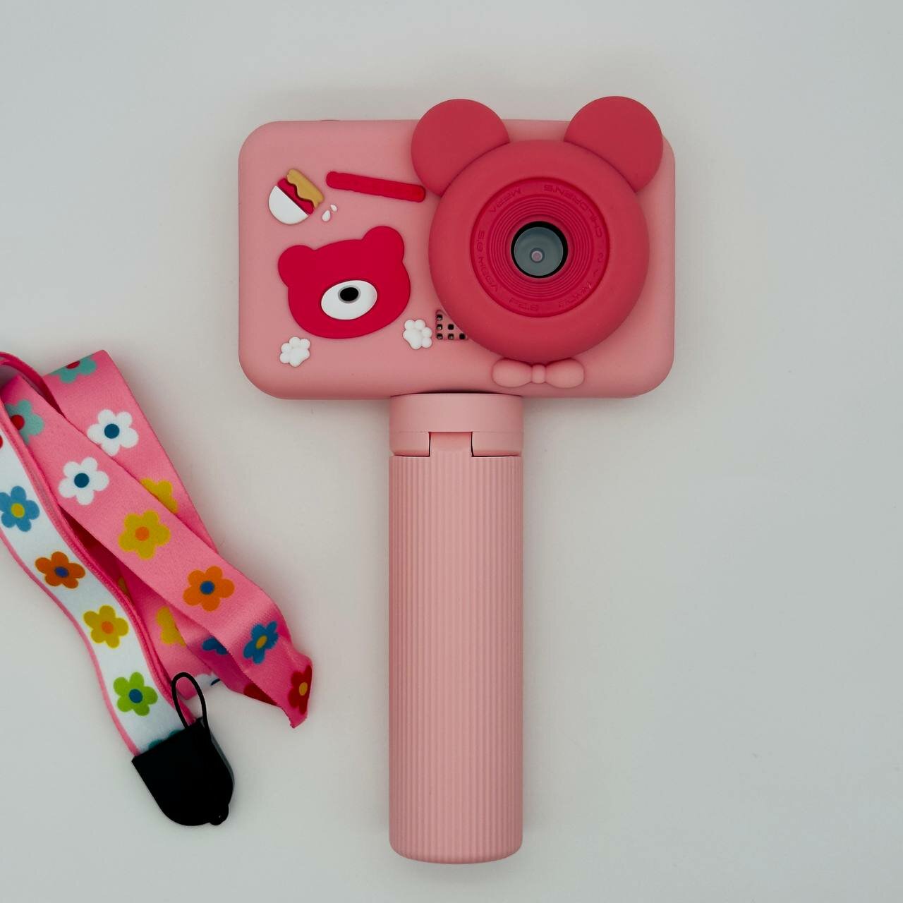 СохранитьФотоаппарат детский цифровой Мишка Розовый со штативом ударопрочный камера 1080p Full-HD со встроенной памятью, фотоаппарат для детей с играми и селфи интересное: