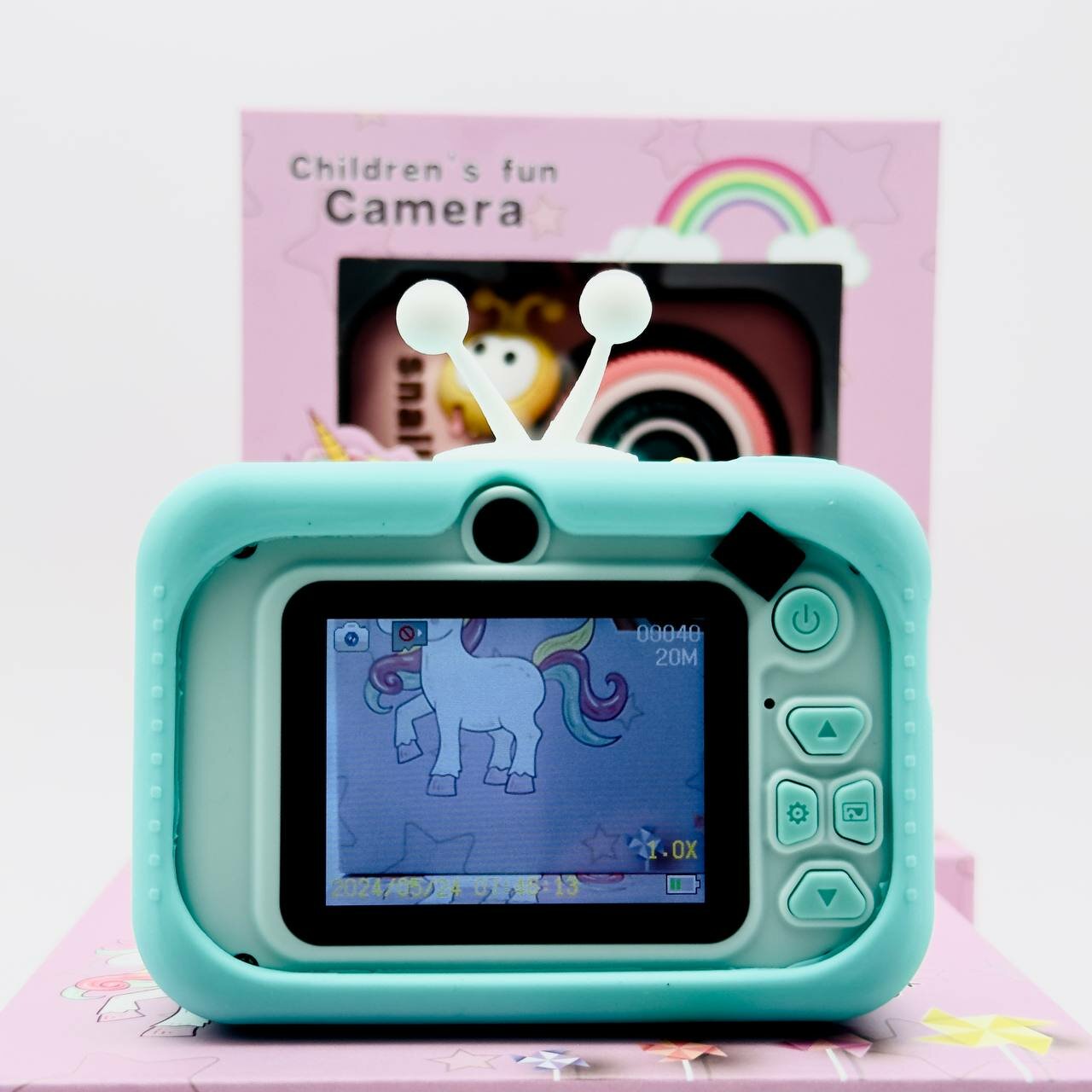 Ударопрочный детский фотоаппарат 1080p Full-HD высокого качества со встроенной памятью цифровая камера с 3 играми и селфи. Единорог розовый
