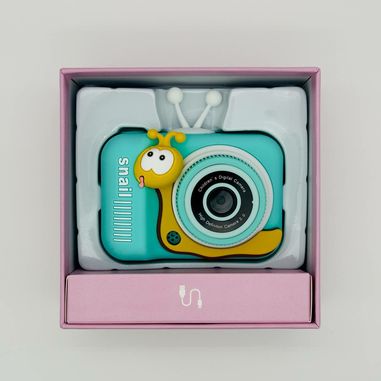 Фотоаппарат детский цифровой Улитка Розовая ударопрочный, камера 48Мп 1080p Full-HD высокого качества со встроенной памятью, фотоаппарат для детей с играми и селфи