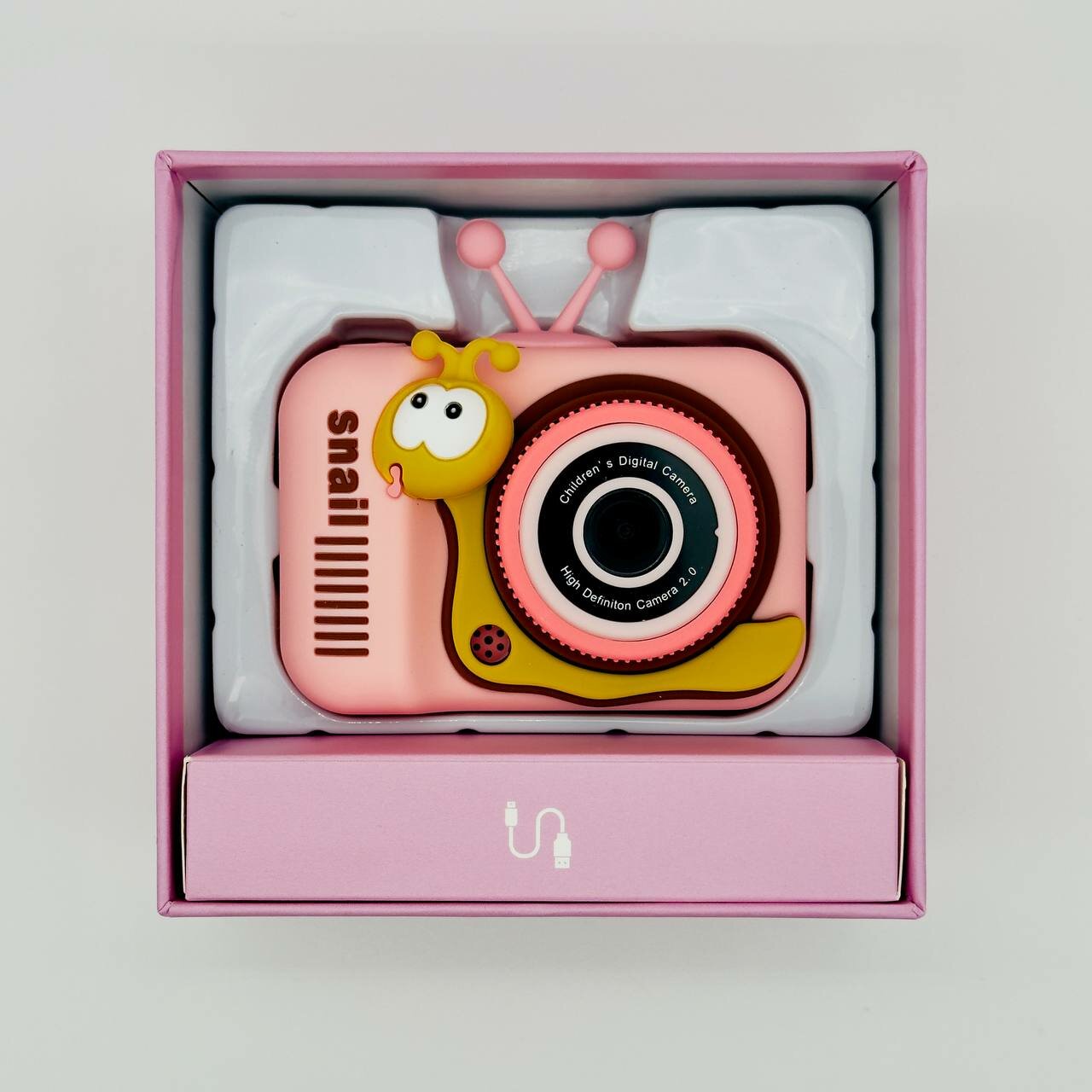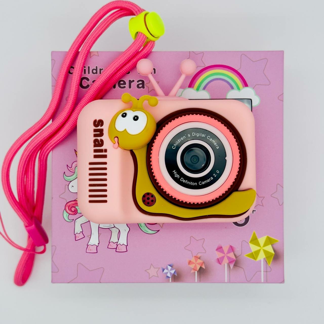 Купить Фотоаппарат детский цифровой Улитка Розовая ударопрочный, камера 48Мп 1080p Full-HD высокого качества со встроенной памятью, фотоаппарат для детей с играми и селфи