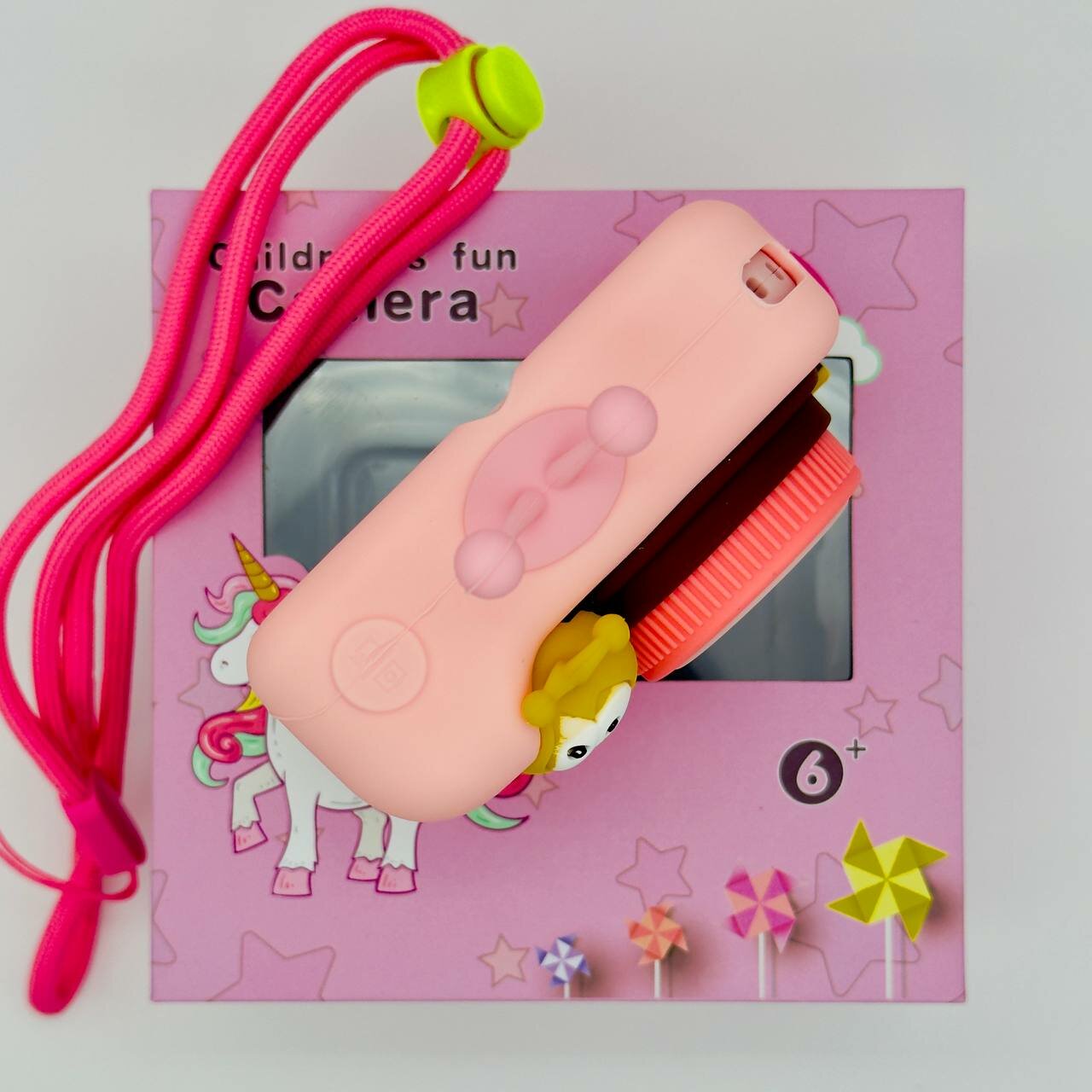 Ударопрочный детский фотоаппарат 1080p Full-HD высокого качества со встроенной памятью цифровая камера с 3 играми и селфи. Единорог розовый